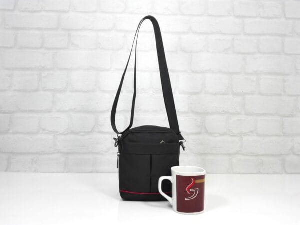 Една дълга подвижна регулираща се текстилна дръжка 140 см. в разгънат вид, на гърба има гайка за да може да се носи на колан
