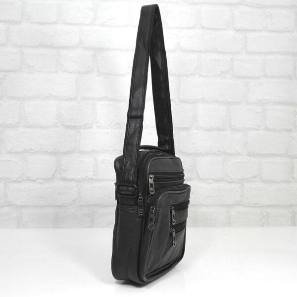 Една малка кожена дръжка за носене на ръка и една дълга регулираща се кожена дръжка подплатена с текстил с дължина 160 см. в разгънат вид