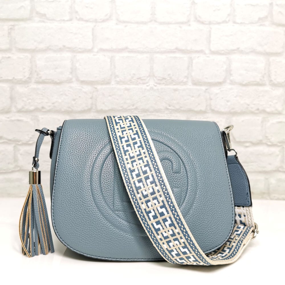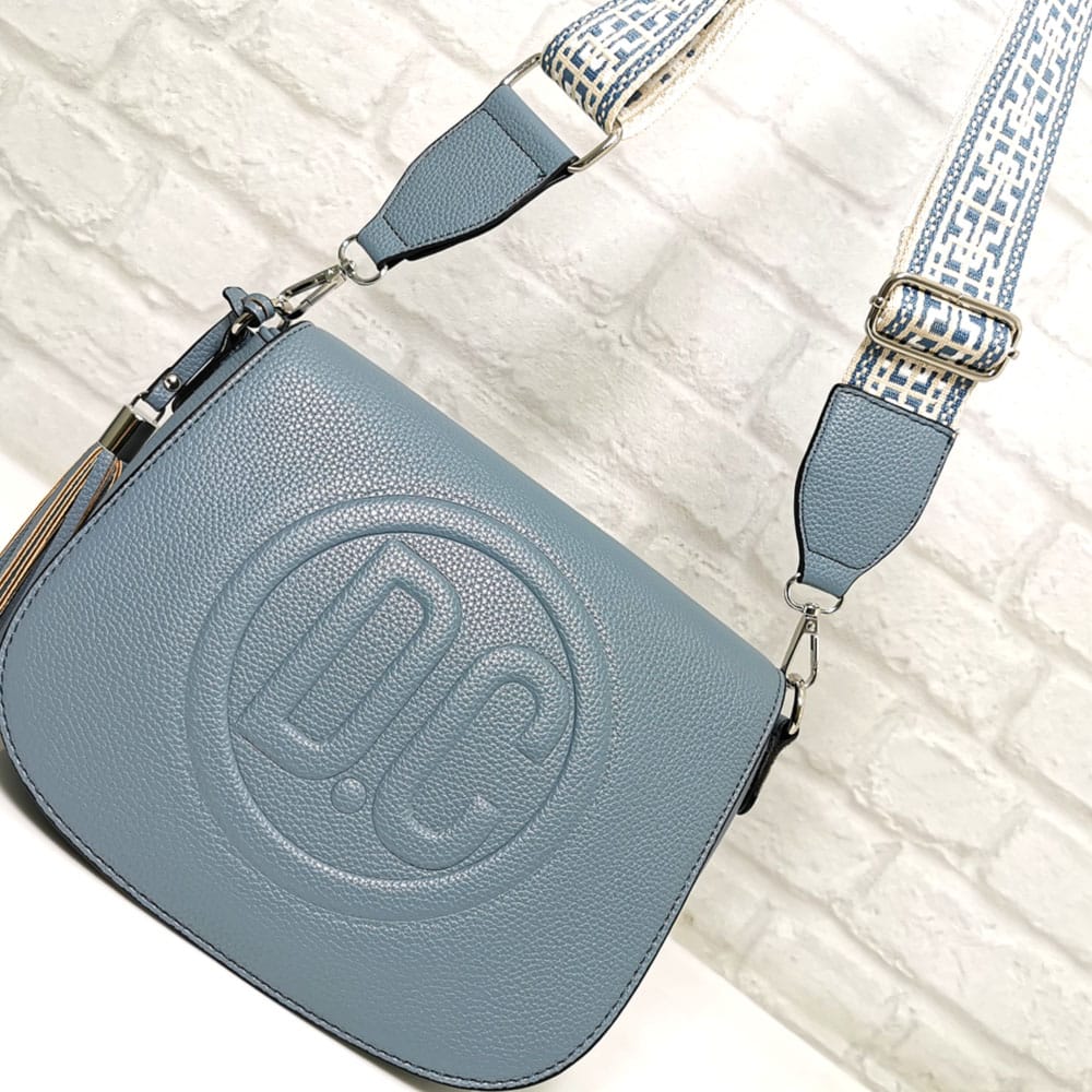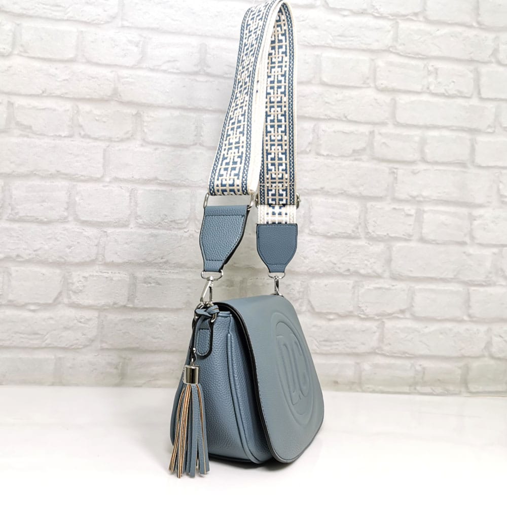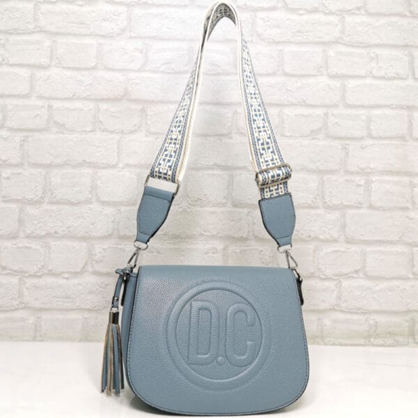 Син, дръжка съчетание от бяло, бежово и синьо, обков сребрист.