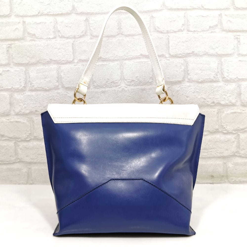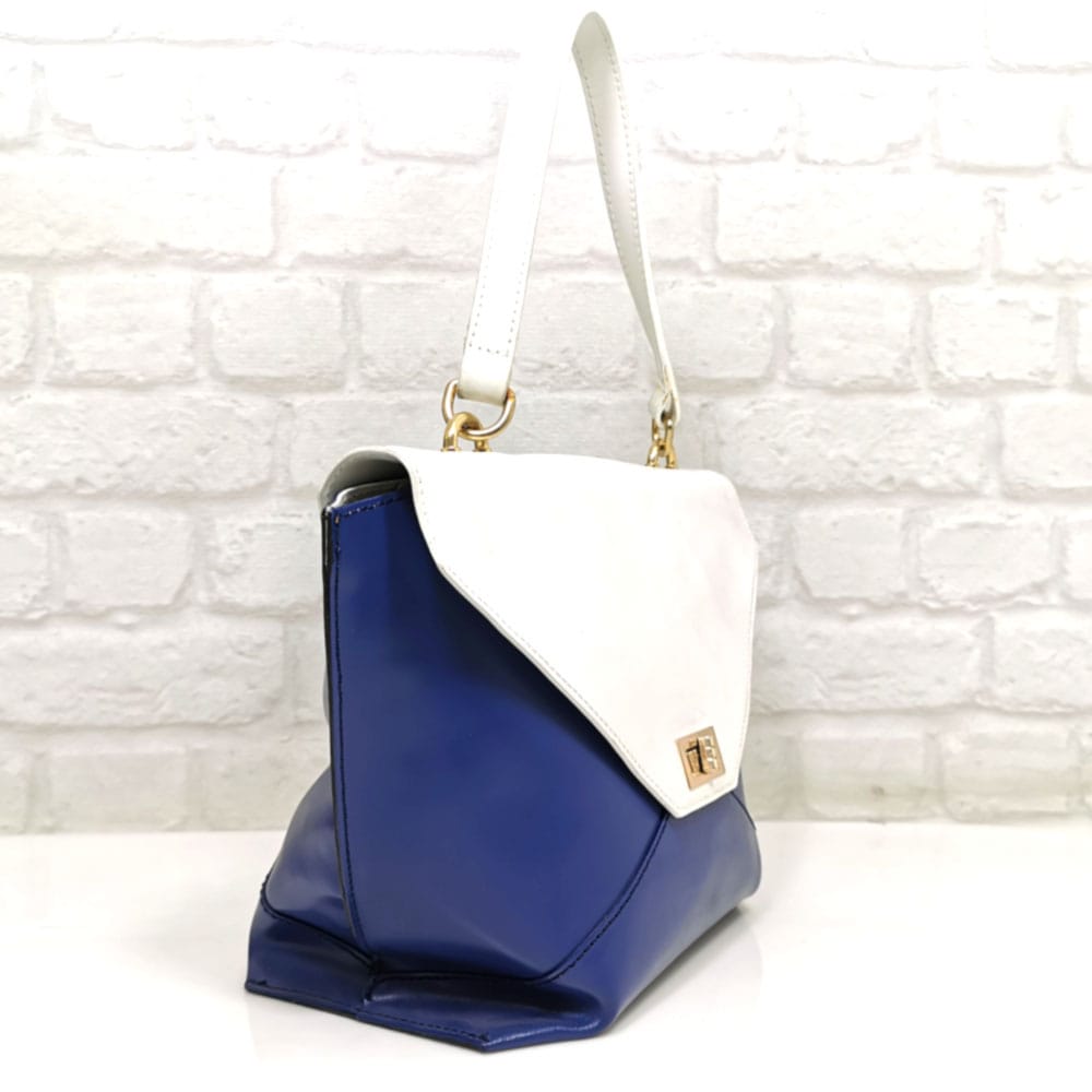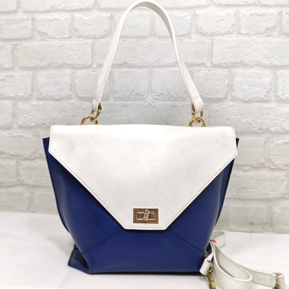 Многоцветна-бяло, тъмно синьо, дръжки бели, обков златист.