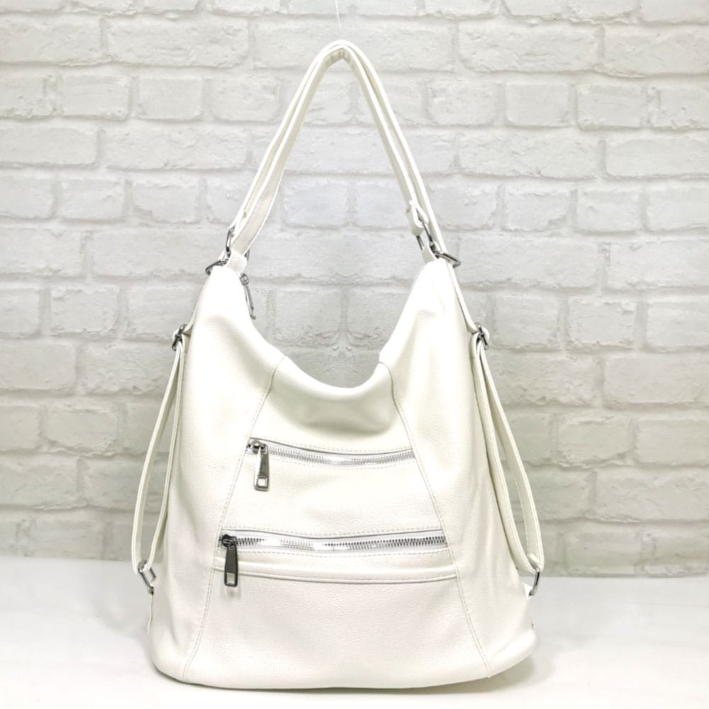 Отвън: на гърба джобче с цип, на лицето два джоба с метални ципове и един джоб без закопчаване.