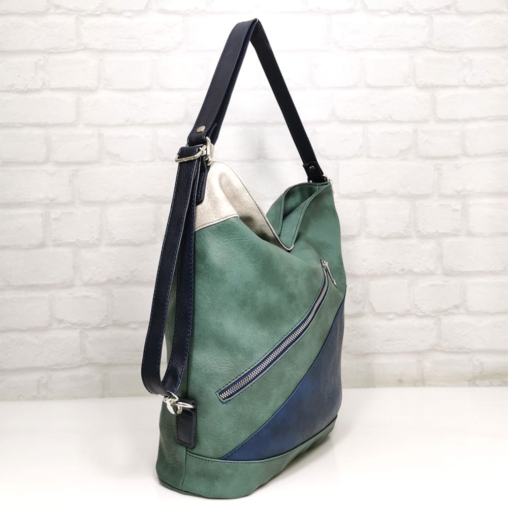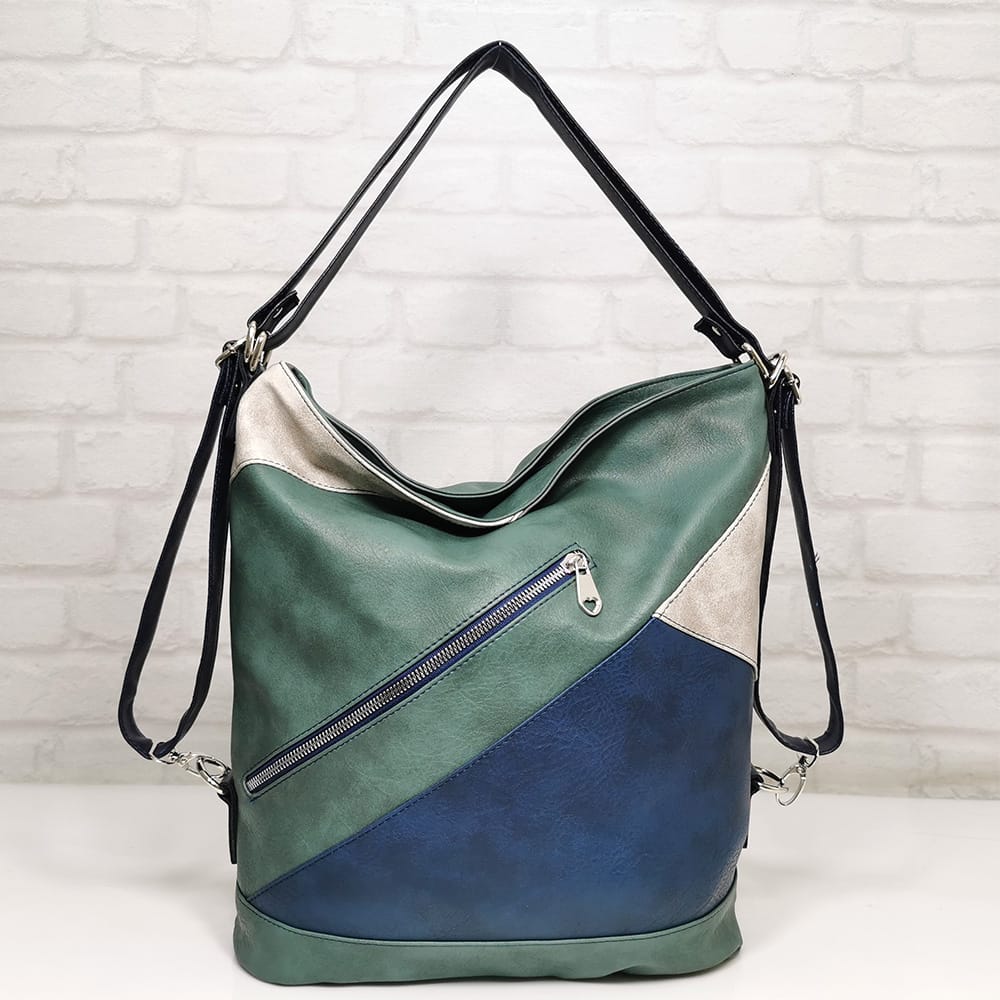 Комбинация от зелен, тъмно син и светло сив цвят, обков метален сребрист.