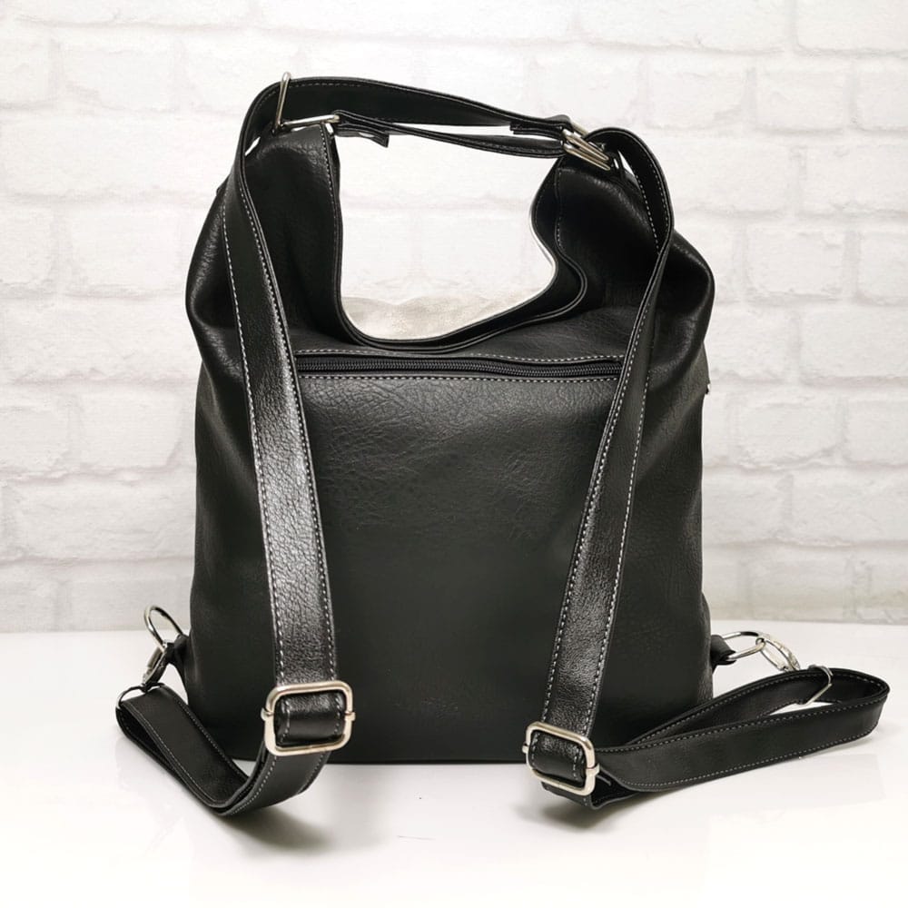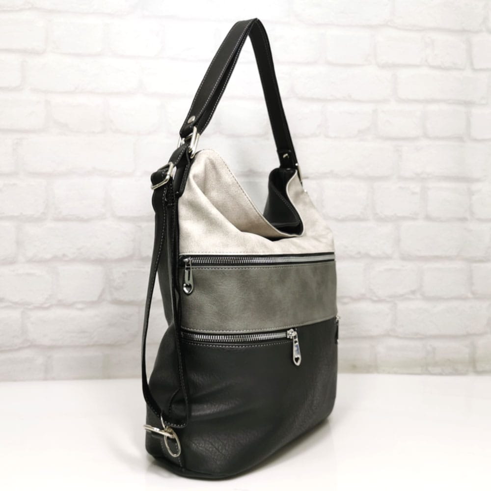 Основен черен, комбиниран с тъмно сив и светло сив, обков сребрист