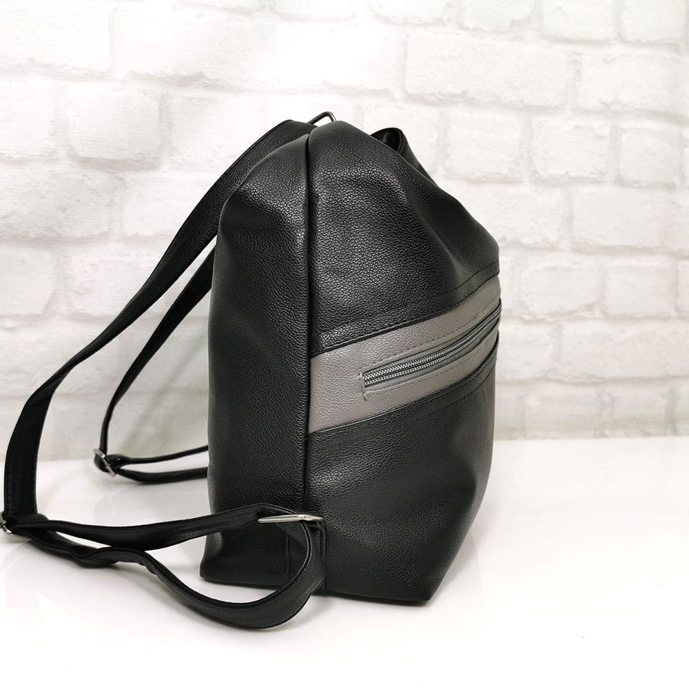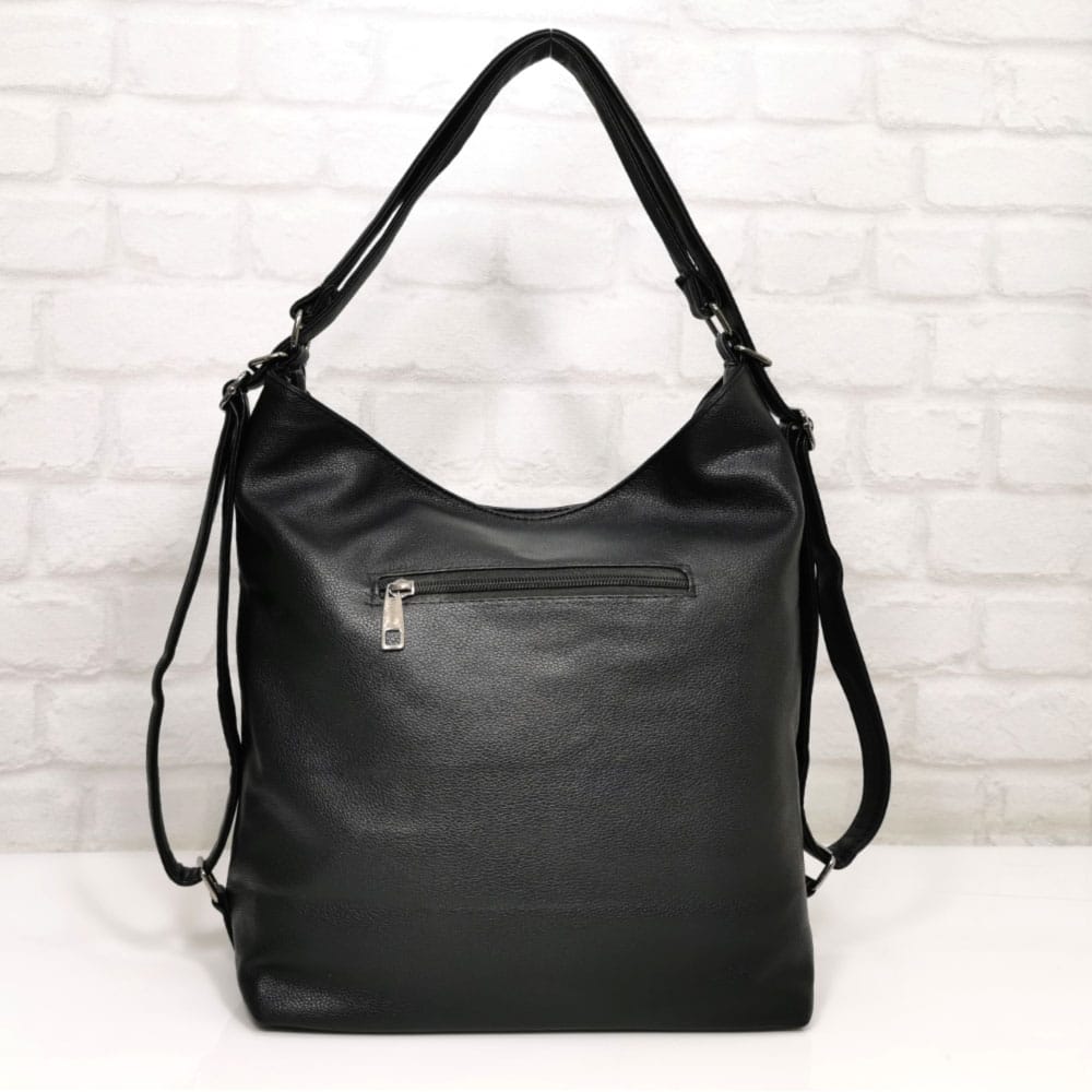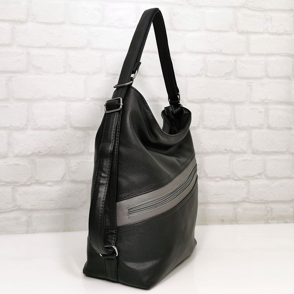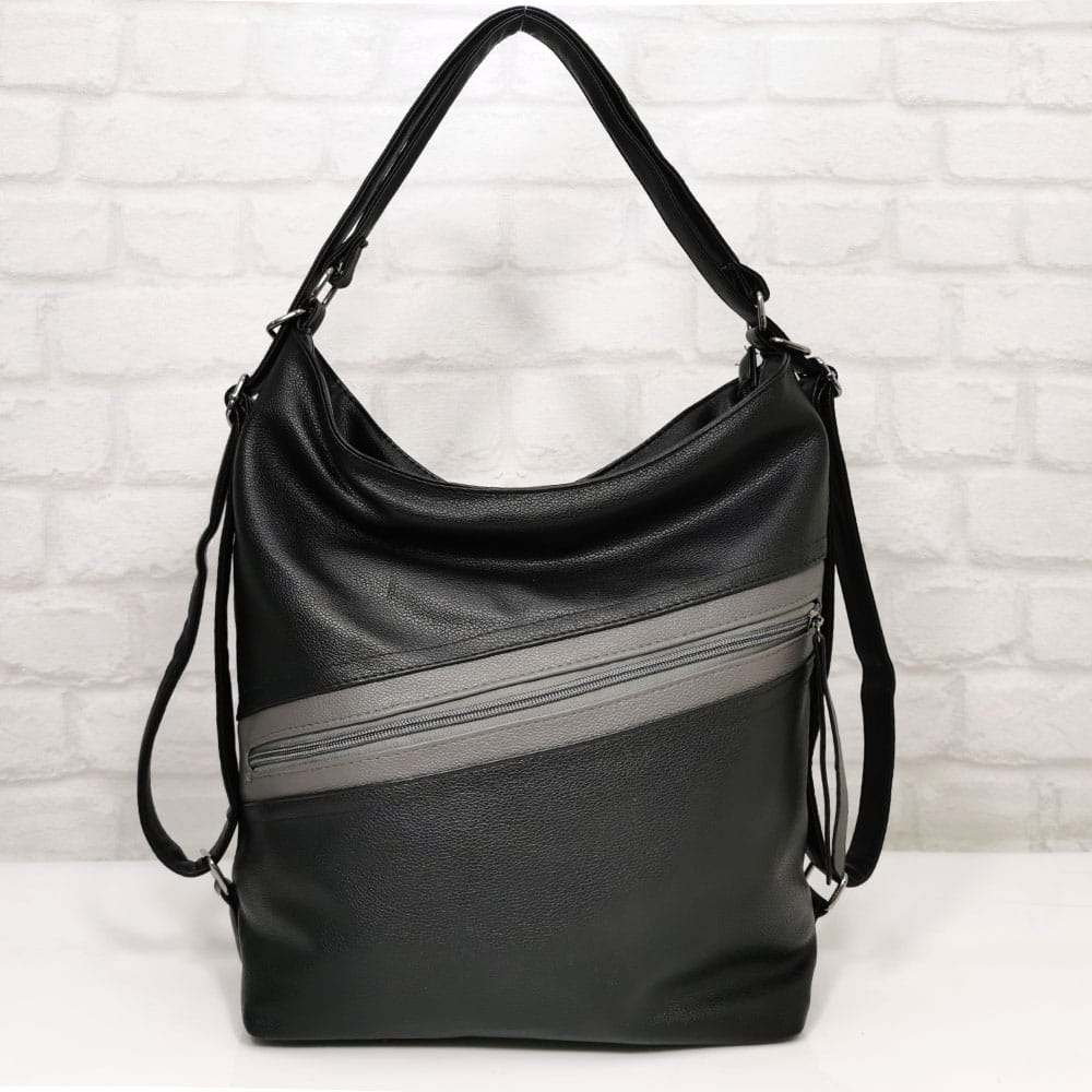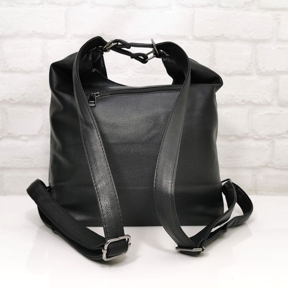 Две регулиращи се дръжки от еко кожа, които като се дръпнат отстрани чантата може да се носи и като раница.