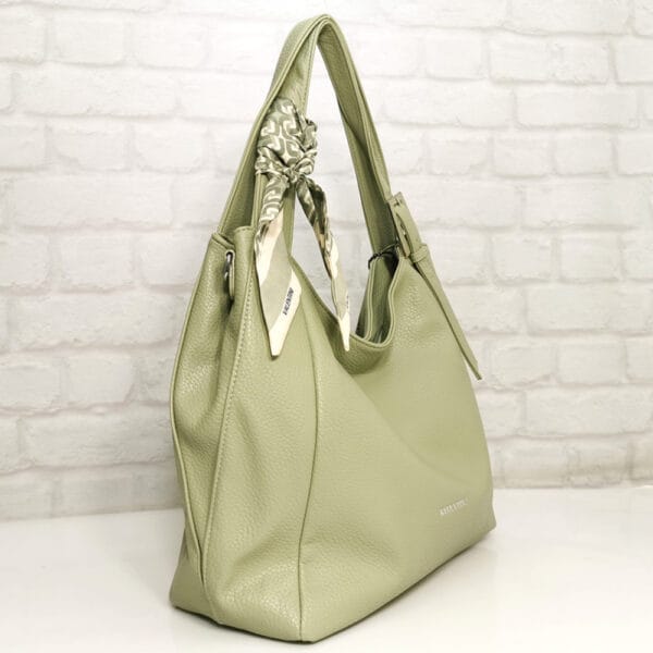 Резеда, шалче зелена гама с екрю, обков метален, сребрист.