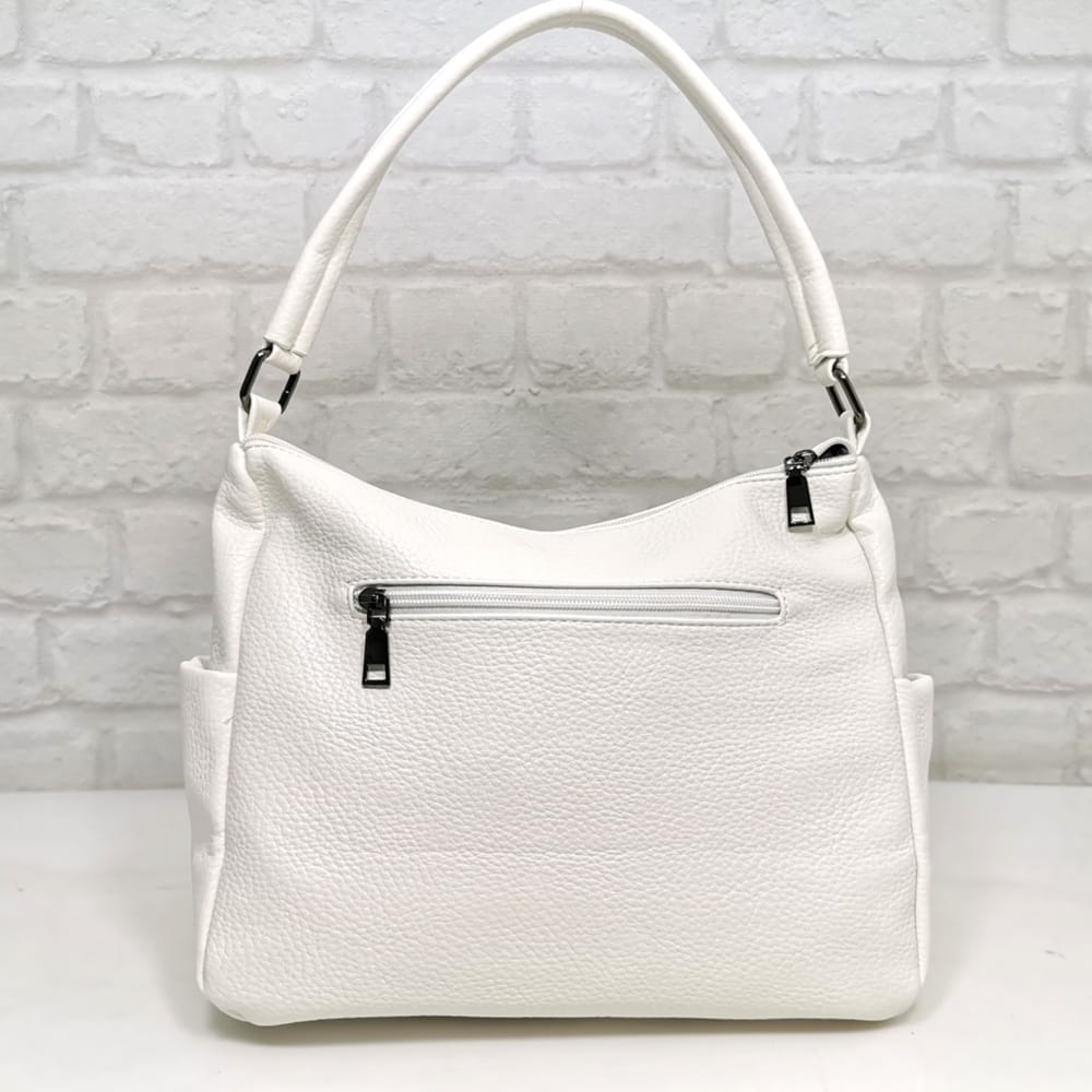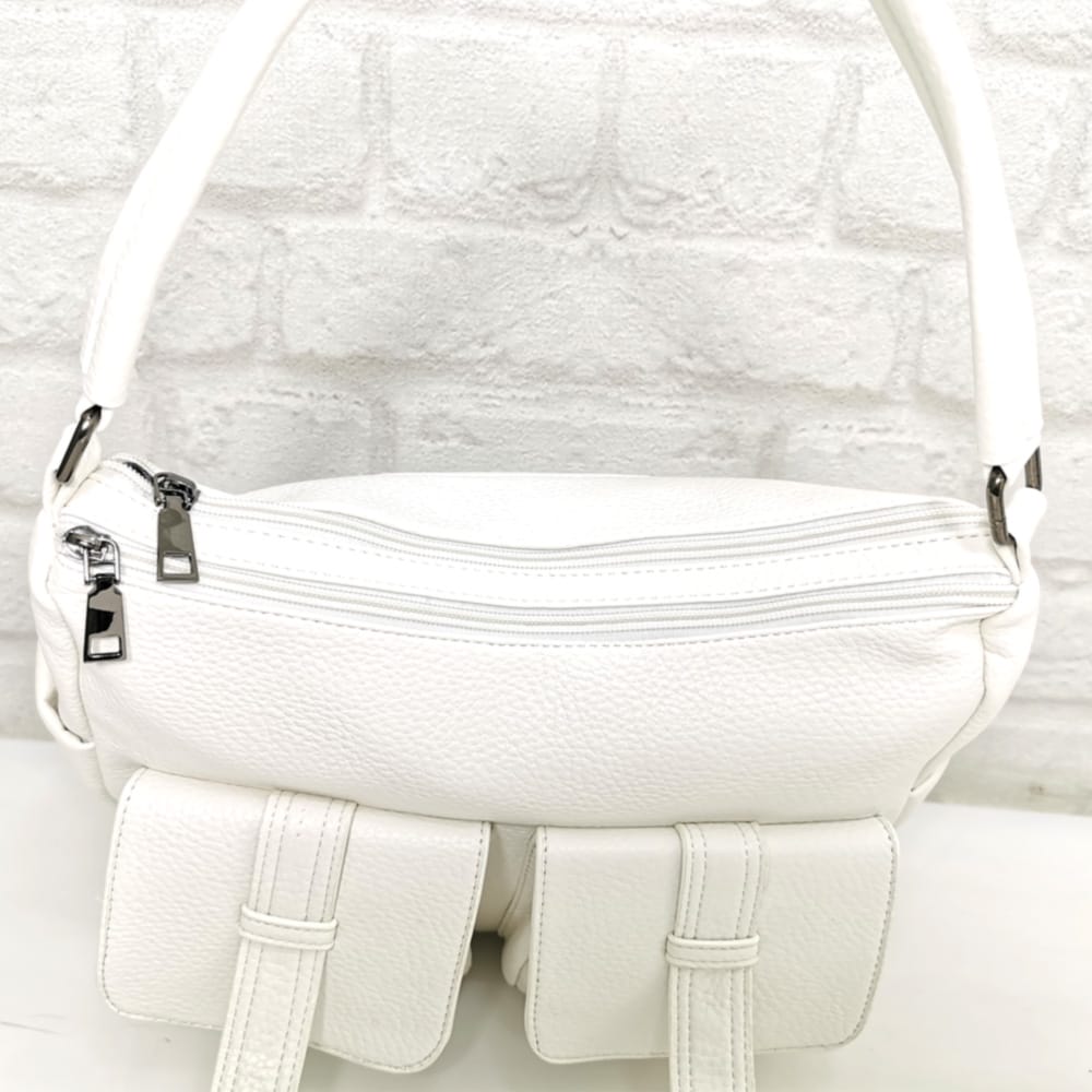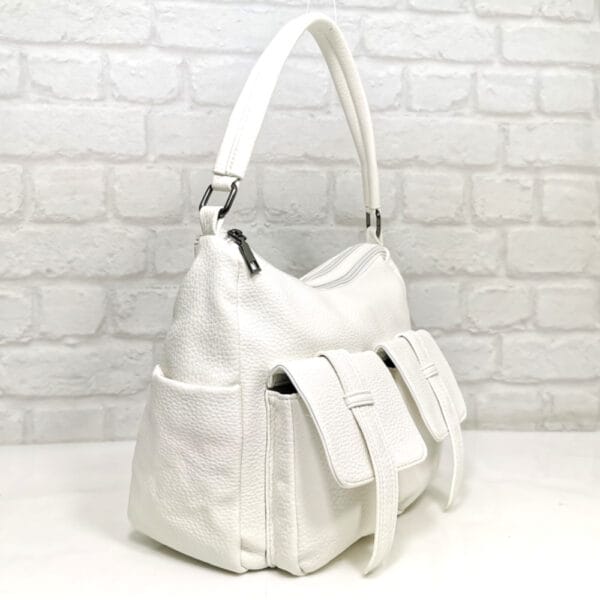 Отвън: отзад джоб с цип, отпред два джоба с капачета и магнитни копчета, от двете страни по един джоб без закопчаване.