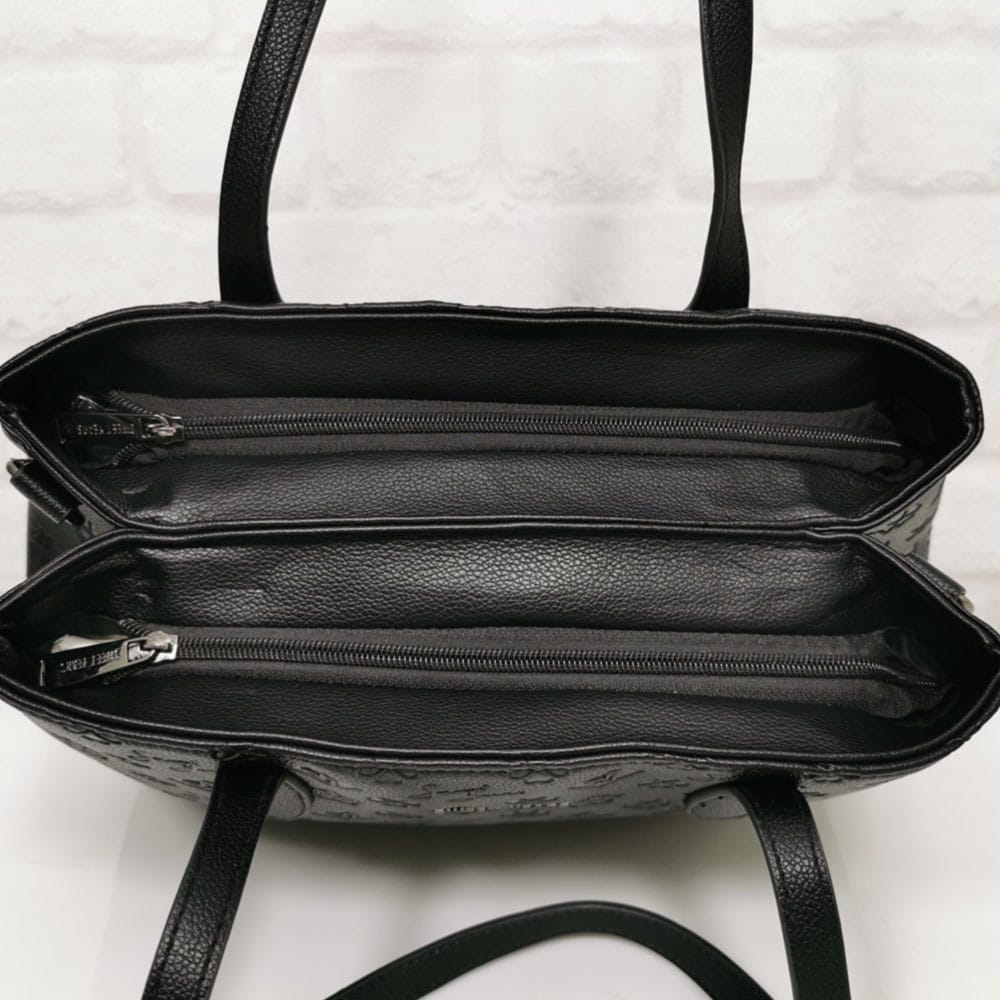 Чантата е с две самостоятелни прегради, като всяка от тях се закопчава с отделен цип.