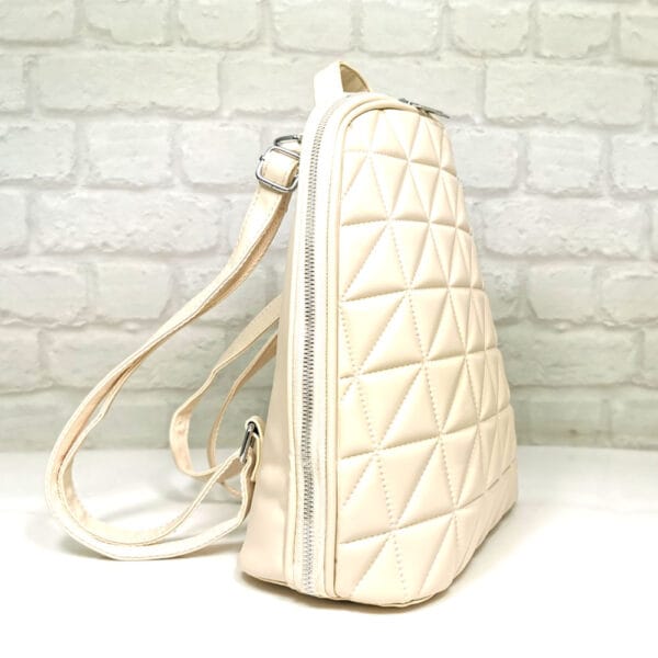 Отвън: на гърба джоб с цип, на дъното малки метални крачета.