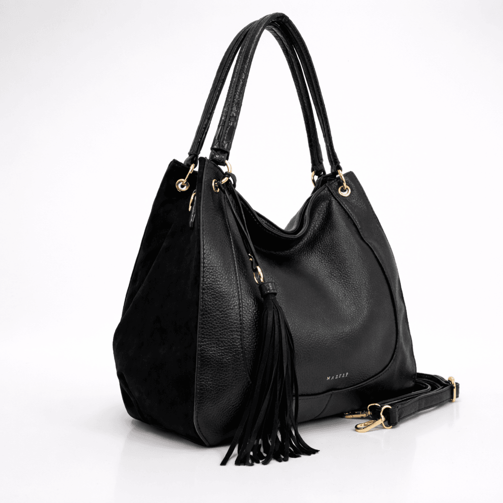 Две удобни за носене на рамо дръжки от еко кожа с принт и една подвижна регулираща се дръжка.