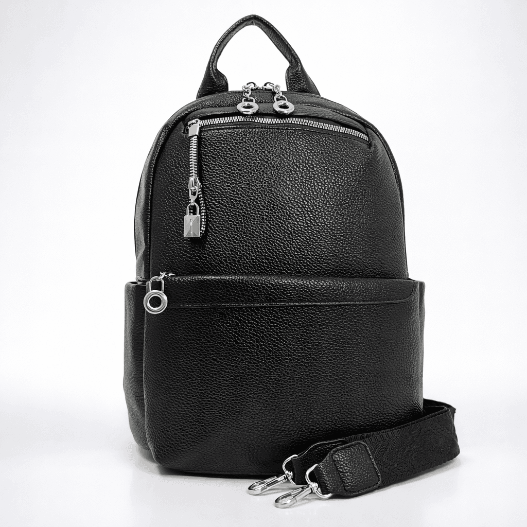 Две дълги регулиращи се дръжки, комбинация от еко кожа и текстилна лента, една средна подвижна дръжка от шарена текстилна лента и една къса дръжка.