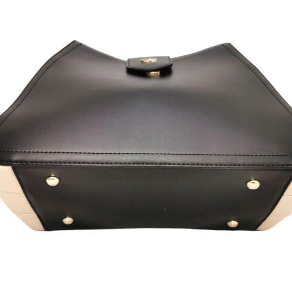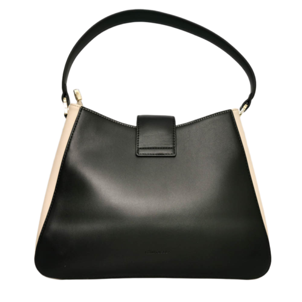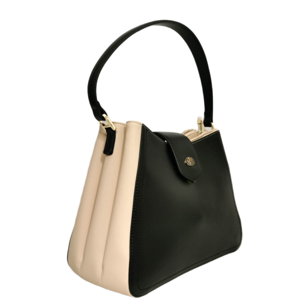 Стилна дамска чанта  в комбинация от класическо черно и елегантно екрю. Моделът е с една дръжка, много удобна за носене на рамо, дори и с по-обемни дрехи. Има и подвижна регулираща се дръжка за носене на рамо или през тялото по диагонал. В комплекта е включено и практично портмоне в същия стил. Подходяща за ежедневието и специални поводи. Изработена е от висококачествена еко кожа и е с оригинален дизйн на италианската марка CHRISBELLA. Всички стоки са с преглед и тест ! Безплатна доставка за заявки над 60.00 лева до офис на транспортна фирма!