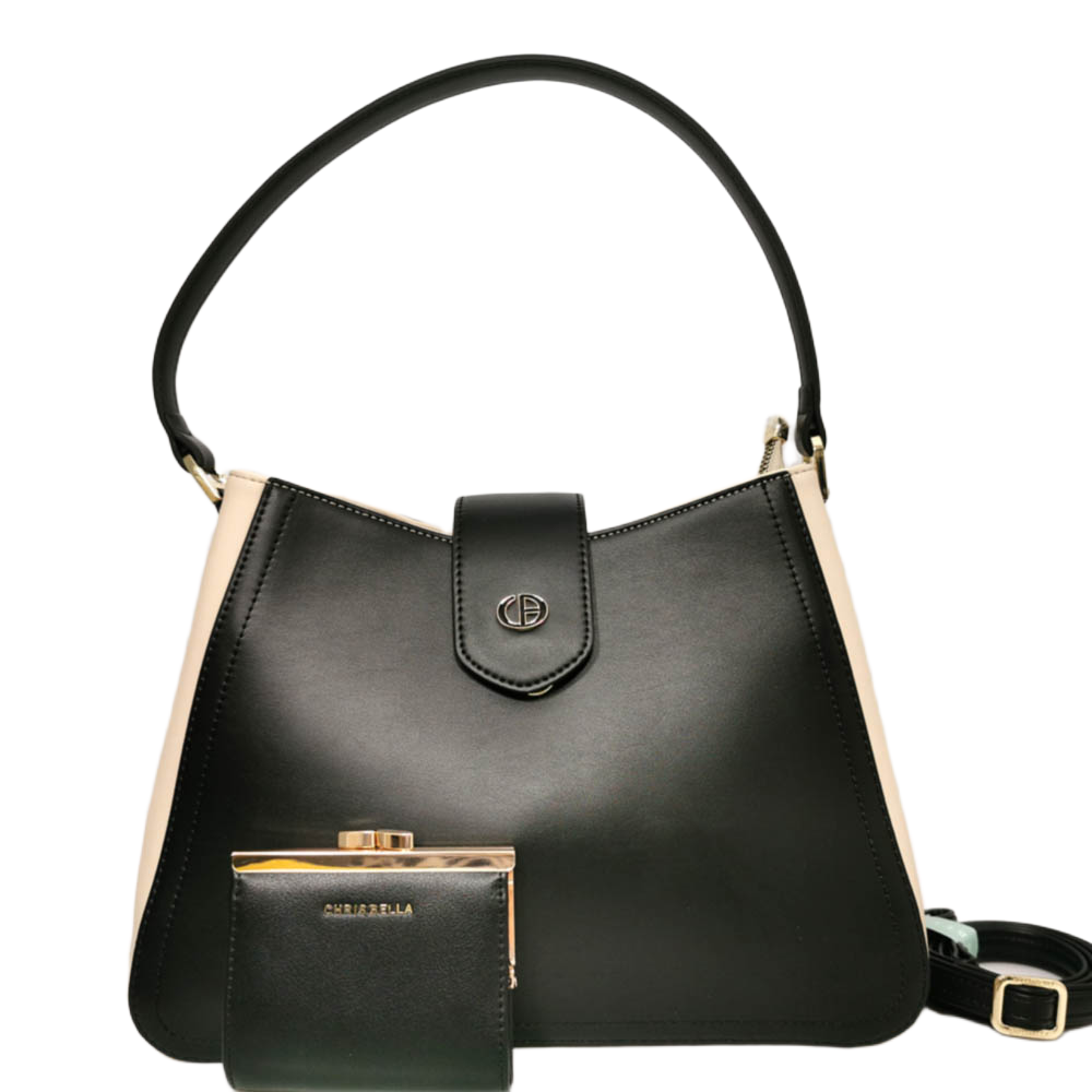 Дамска чанта CHRISBELLA 2505-2H черна с бежово, в комплект с портмоне