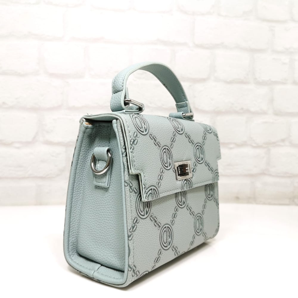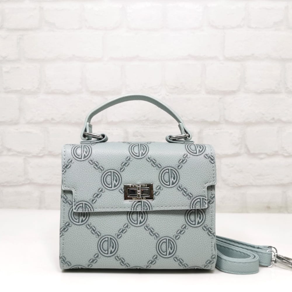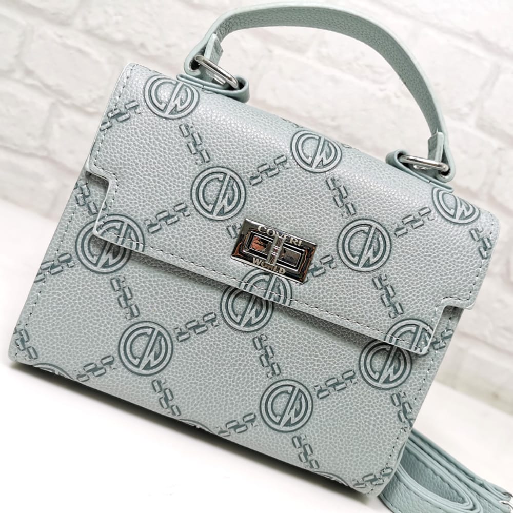 Красива малка дамска чанта, брандирана с контрастна щампа. Има къса и дълга реголируема дръжка от еко кожа. Перфектна както за стилна ежедневна визия, така и за специални поводи.