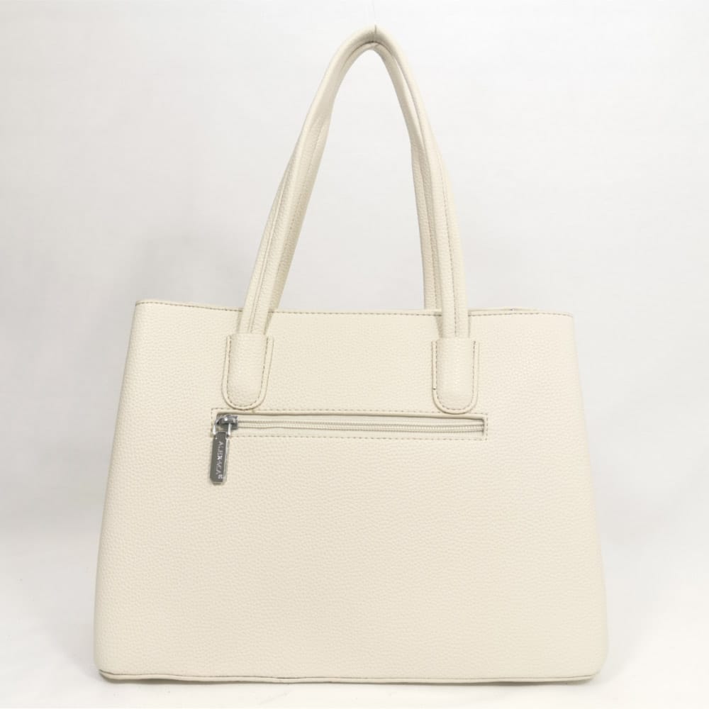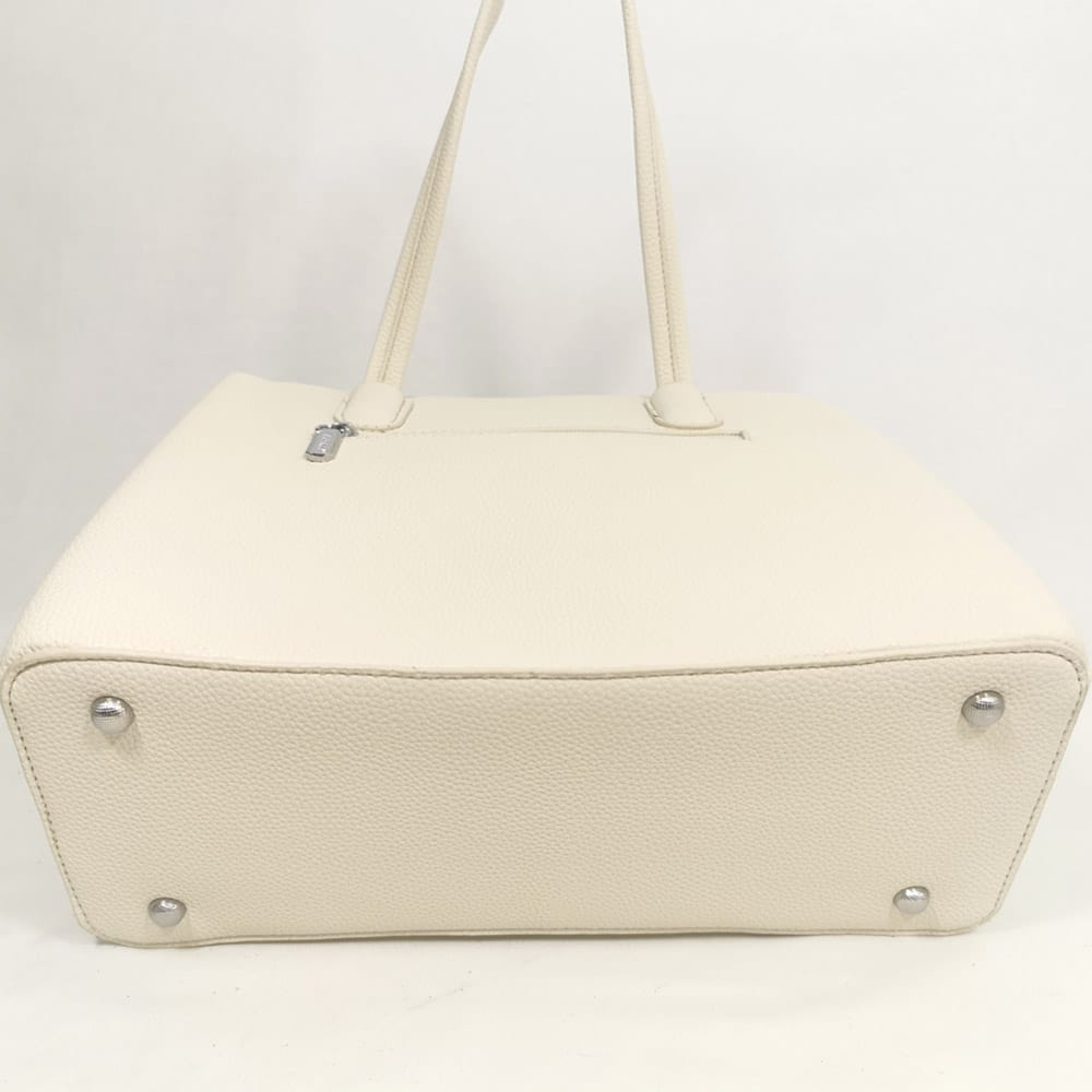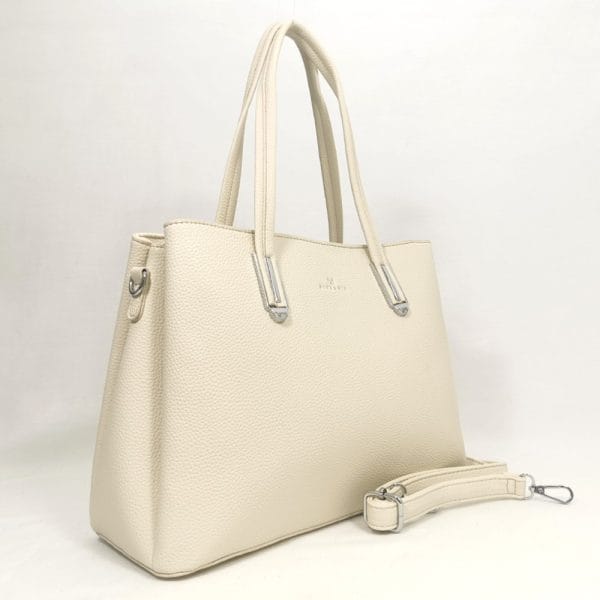 Тази дамска чанта от еко кожа е със среден размер. Този модел в бежов нюанс е точният баланс между изчистена елегантност и ежедневна практичност. Меката релефна повърхност стои изискано, а сребристите метални елементи при дръжките придават завършен, модерен характер. Формата е стабилна и запазва силуета си, а металните крачета отдолу пазят дъното, когато я оставиш… където и да еВътре има удобни джобове за подредба, а дългата регулируема дръжка ти дава свобода да я носиш на рамо, когато денят стане по-бърз от графика. Идеална за документи, несесер и … още нещо