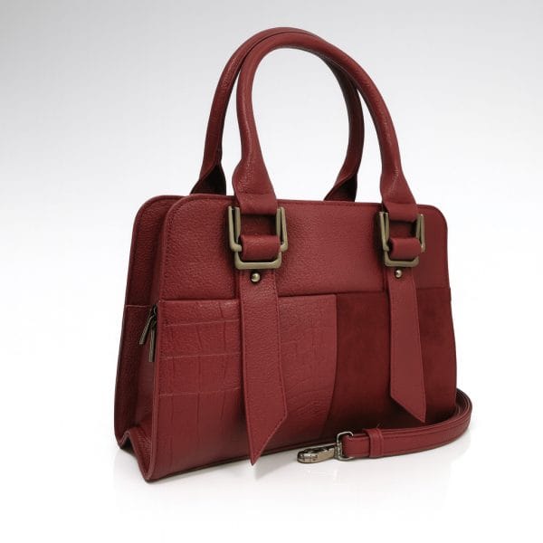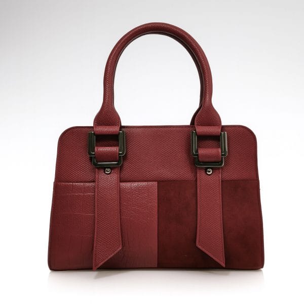 Релефната еко кожа, декоративните каиши с масивни метални токи и фините шевове създават премиум усещане още от първия допир. Двете отделни прегради с цип, вътрешните джобове и задният джоб с цип помагат всичко важно да бъде на мястото си, а стабилните къси дръжки и регулируемата дълга дръжка дават свобода да я носите така, както ви е най-удобно.