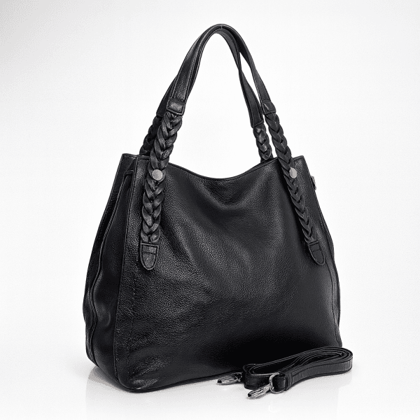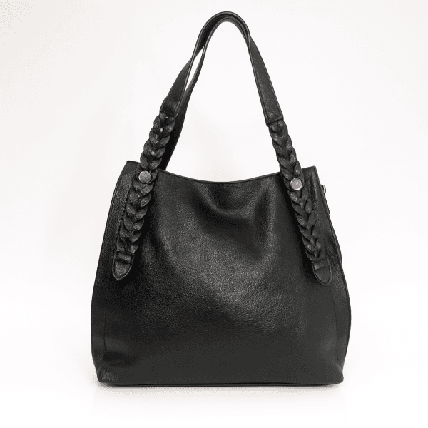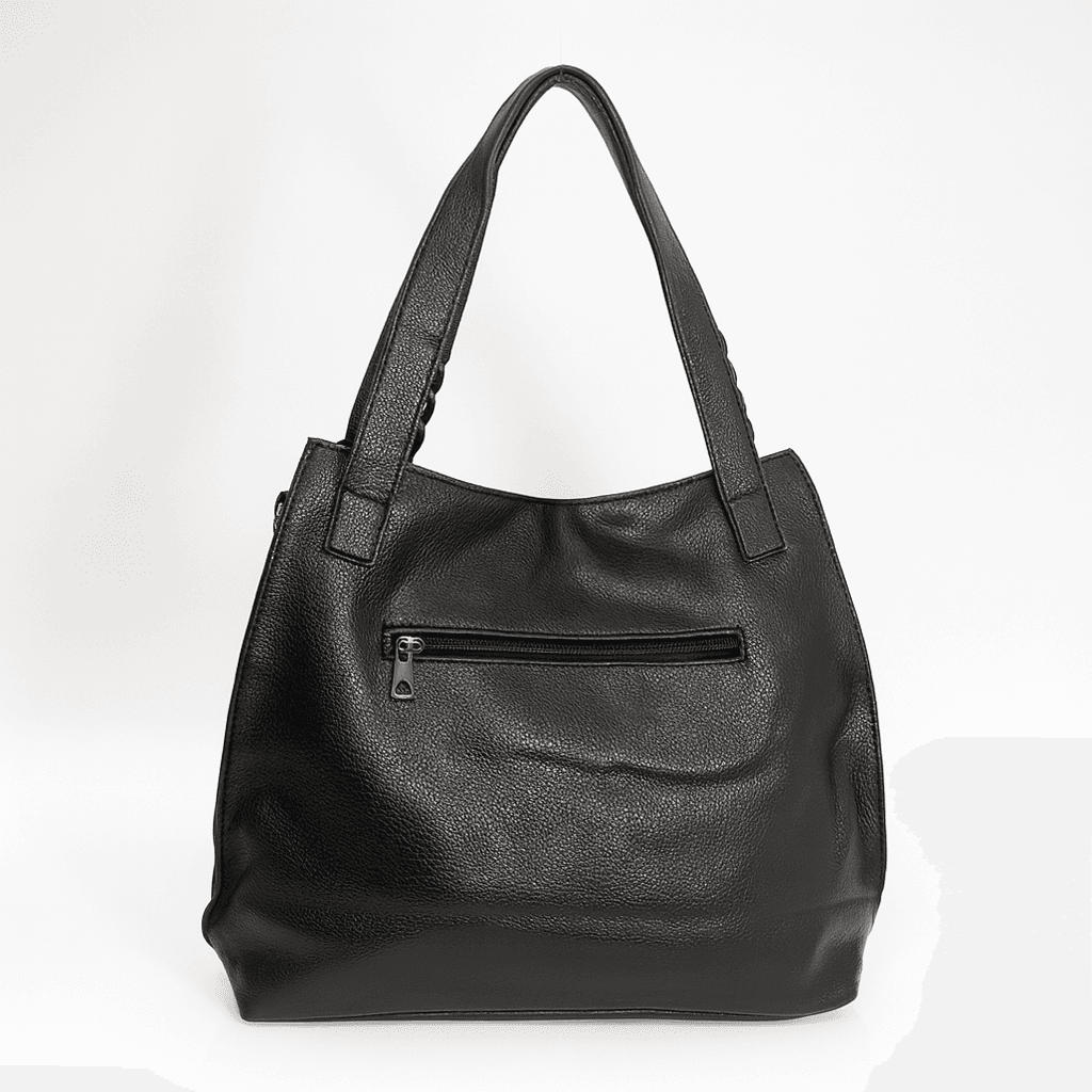 Тази дамска чанта от еко кожа в черно е практично решение за всяко динамично ежедневие. Меката текстура и изчистеният силует я правят лесна за съчетаване както с работна визия, така и с по-лежерно облекло. Задния джоб с цип осигурява бърз достъп до най-необходимите вещи, а стабилните дръжки гарантират комфорт при носене.