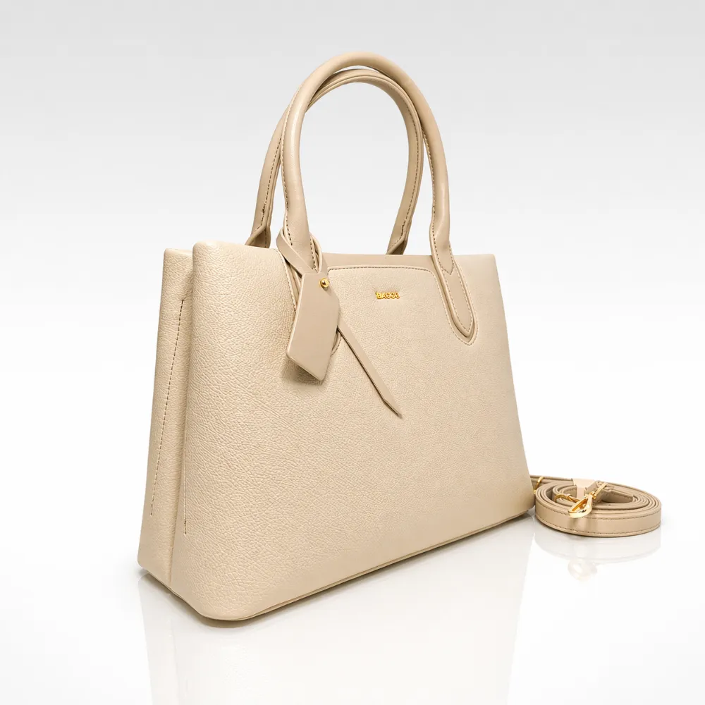Стилна дамска чанта от еко кожа в мек бежов нюанс, създадена за елегантна визия с премиум усещане. Релефната текстура, златистите метални елементи и допълнителната регулируема дръжка я правят практичен акцент за всеки ден. Приблизителни размери: дължина дъно 32 см, ширина дъно 14 см, височина без дръжки 23 см.ВСИЧКИ СТОКИ СЕ ДОСТАВЯТ С ПРЕГЛЕД И ТЕСТ! БЕЗПЛАТНА ДОСТАВКА за заявки над 80.00 лв/40.90€ до офис на транспортна фирма! ДИРЕКТНА ПОРЪЧКА на телефон 0878309969. Каталожен номер 80060 BE.