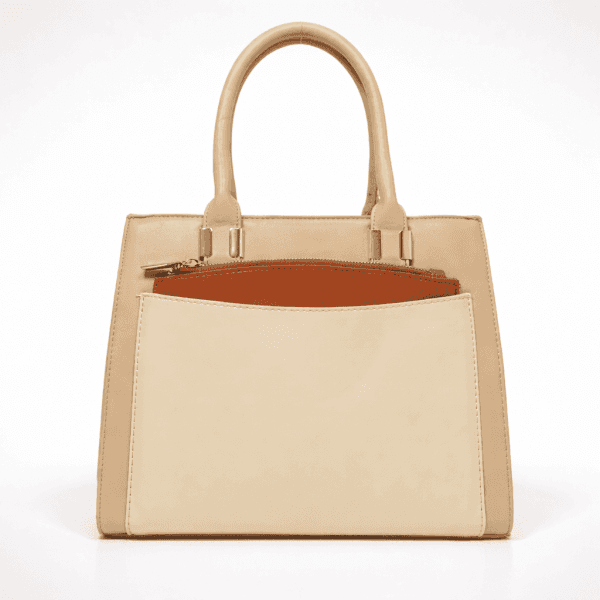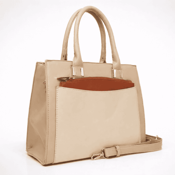 Елегантна дамска чанта в нежен бежов нюанс с изчистена линия и практичен преден джоб. Приблизителни размери: ширина дъно 12см, дължина на дъно – 30 см, височина без дръжки -24 см.Включва допълнителна  чантичка за още удобство и стил. ВСИЧКИ СТОКИ СЕ ДОСТАВЯТ С ПРЕГЛЕД И ТЕСТ! БЕЗПЛАТНА ДОСТАВКА за заявки над 80.00 лева до офис на транспортна фирма! ДИРЕКТНА ПОРЪЧКА на телефон 0878309969. Каталожен номер 551BE.