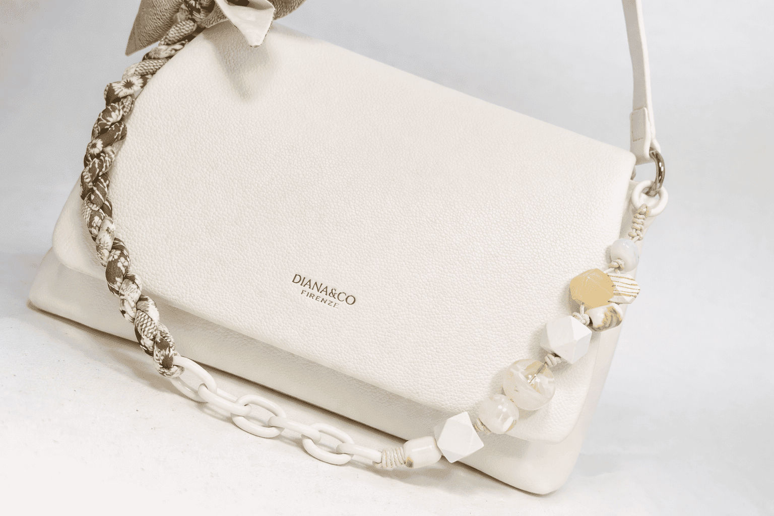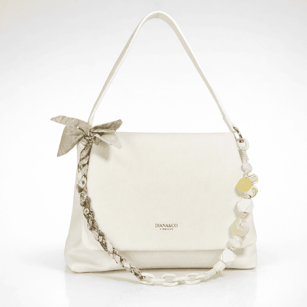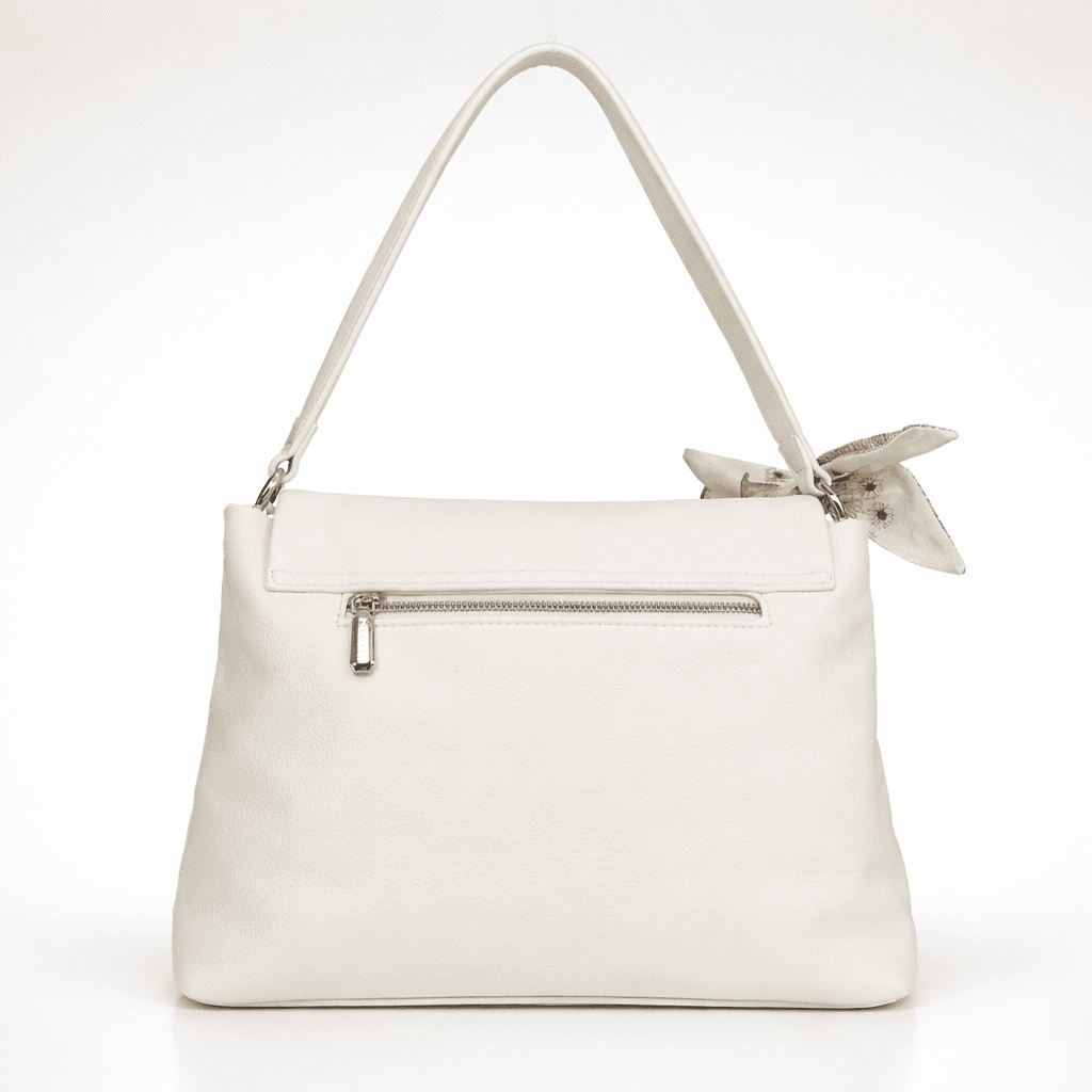 Снимките разкриват мека, приятна на допир текстура и минималистичен силует. Акцентите са ясно изразени – декоративни елементи , вързани към дръжката, и ефектна верижка , които придават характер и индивидуалност на модела. Задният джоб с цип добавя практичност,