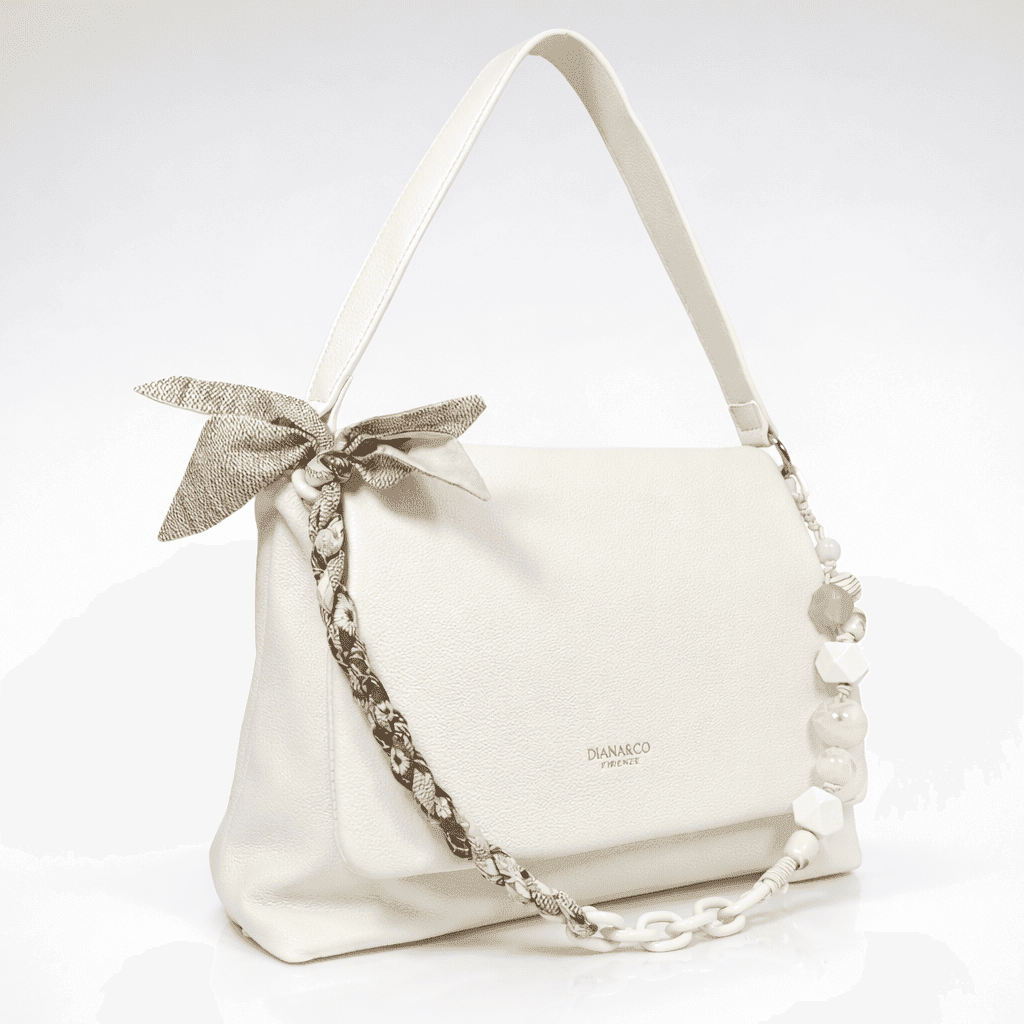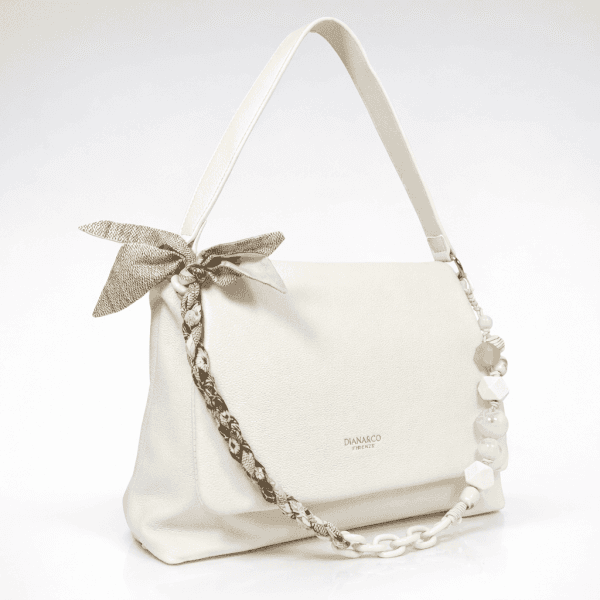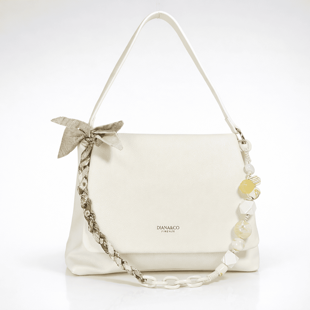 Тази дамска чанта от еко кожа е създадена за жени, които обичат свежата визия и вниманието към детайла. Белият цвят придава чистота и стил, а съчетанието с модерни декоративни елементи я прави изключително отличима и актуална за ежедневието.