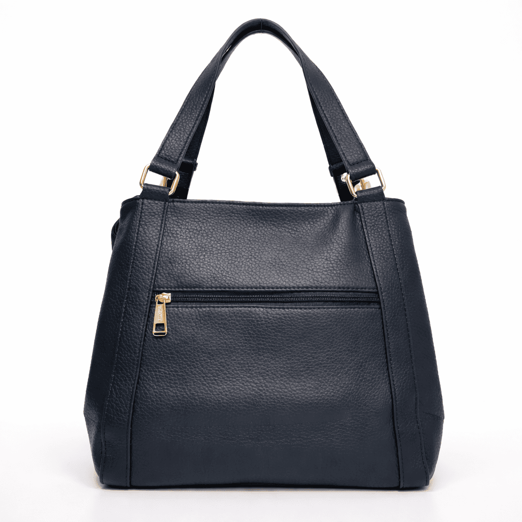 Тази дамска чанта  от еко кожа е от онези модели, които не просто допълват визията, а ѝ придават характер. Съчетава елегантен силует, наситен тъмносин цвят и модерно усещане за стил, което стои еднакво добре както в деловото ежедневие, така и в по-свободните градски комбинации.