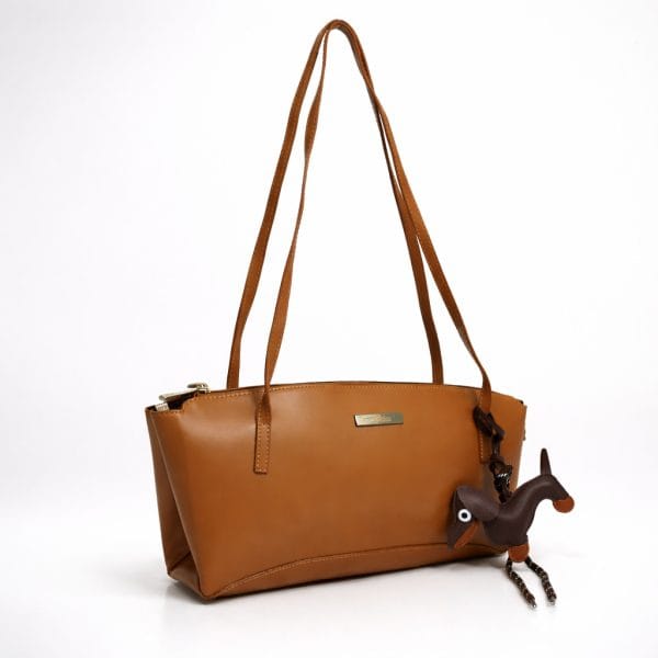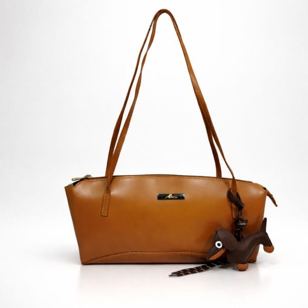 Тази дамска чанта от естествена кожа в камел цвят съчетава модерна визия и практичен дизайн. Формата е компактна и елегантна, а естествената кожа придава усещане за качество и дълготрайност.