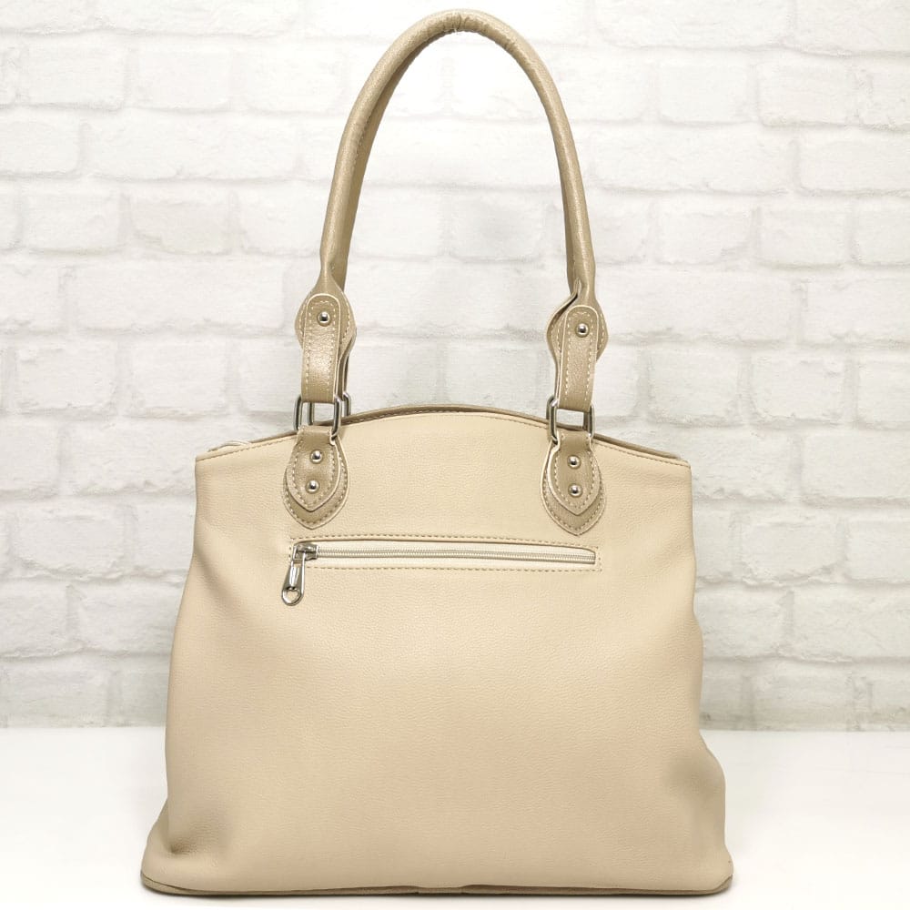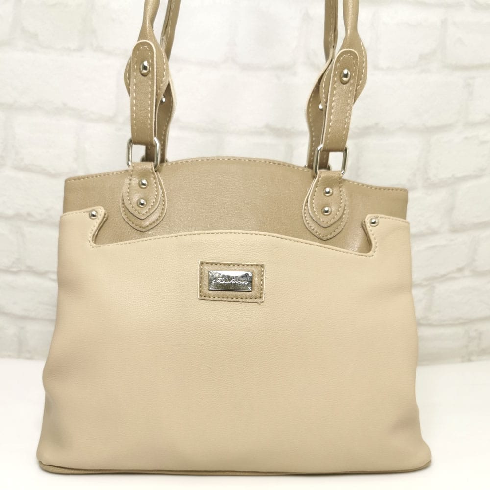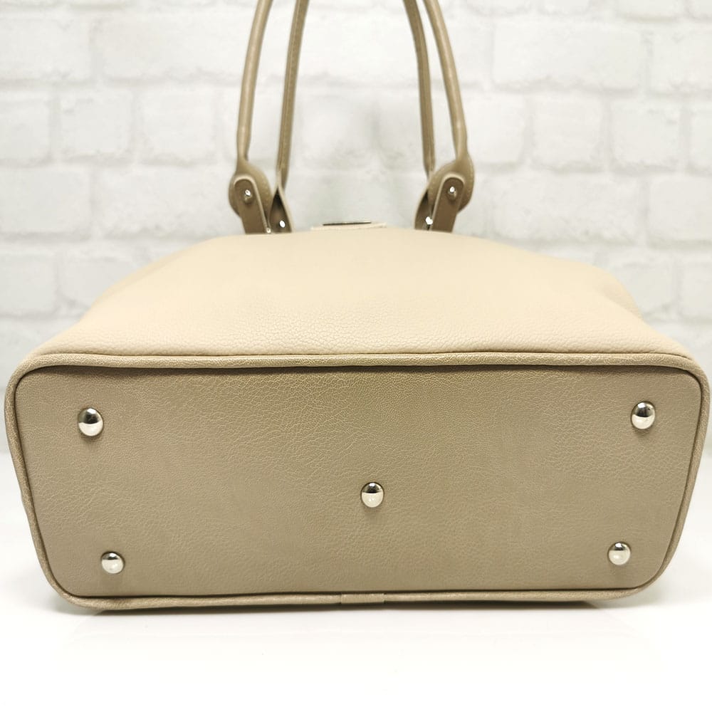 Съчетание от два нюанса бежово, обков сребрист.