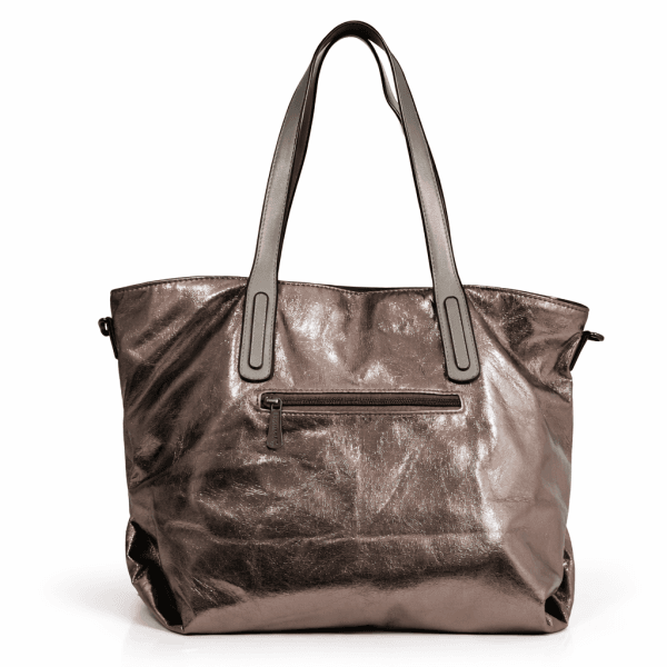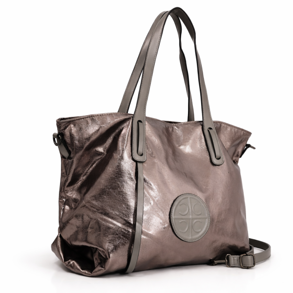 Дамска чанта металик лека и ефектна, за любителите на големи чанти. Има средна преграда и удобни за носене на рамо дръжки. Много подходяща за всеки ден, но може да я носите и за по-специални поводи.