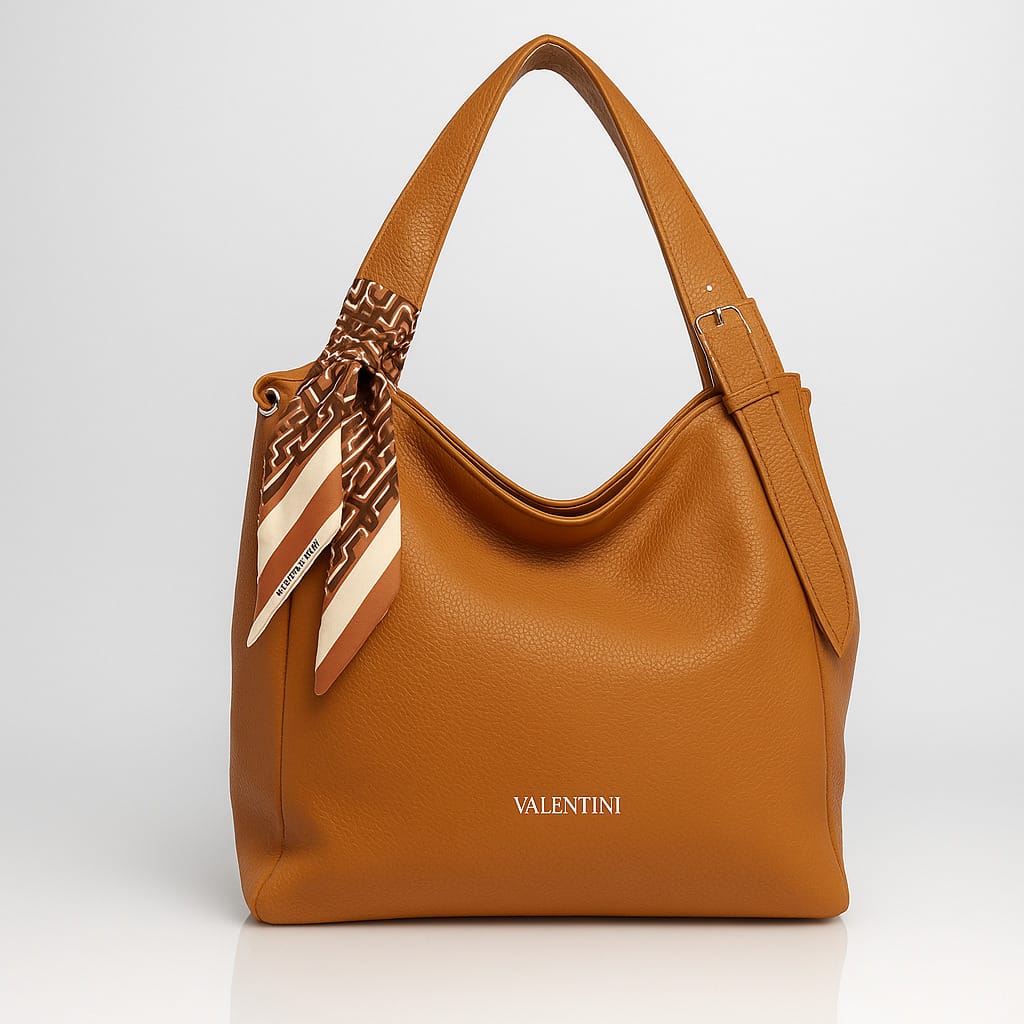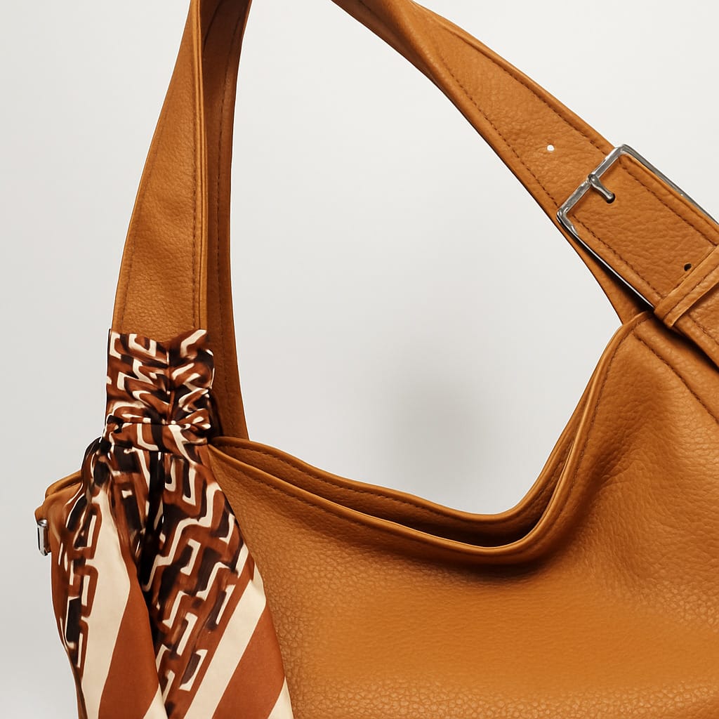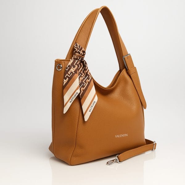 Дамска чанта от еко кожа създадена за ежедневието – достатъчно просторна за най-важните вещи и достатъчно стилна, за да допълни всяка градска визия. Топлият камелен цвят се съчетава лесно с различни облекла, а текстурата и декоративният шал по дръжката придават малко дизайнерски характер. Широките къси дръжки осигуряват комфортно носене на рамо, а включената дълга регулируема дръжка дава още свобода и удобство. Практичният заден джоб с цип е идеален за телефон или ключове, а вътрешното разпределение с преграда и отделни джобчета помага всичко да бъде подредено през целия ден.