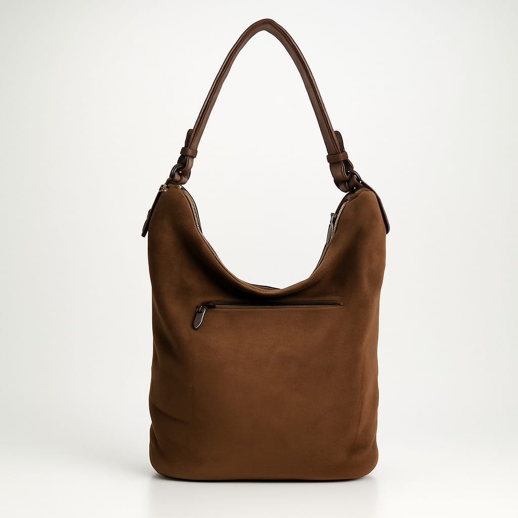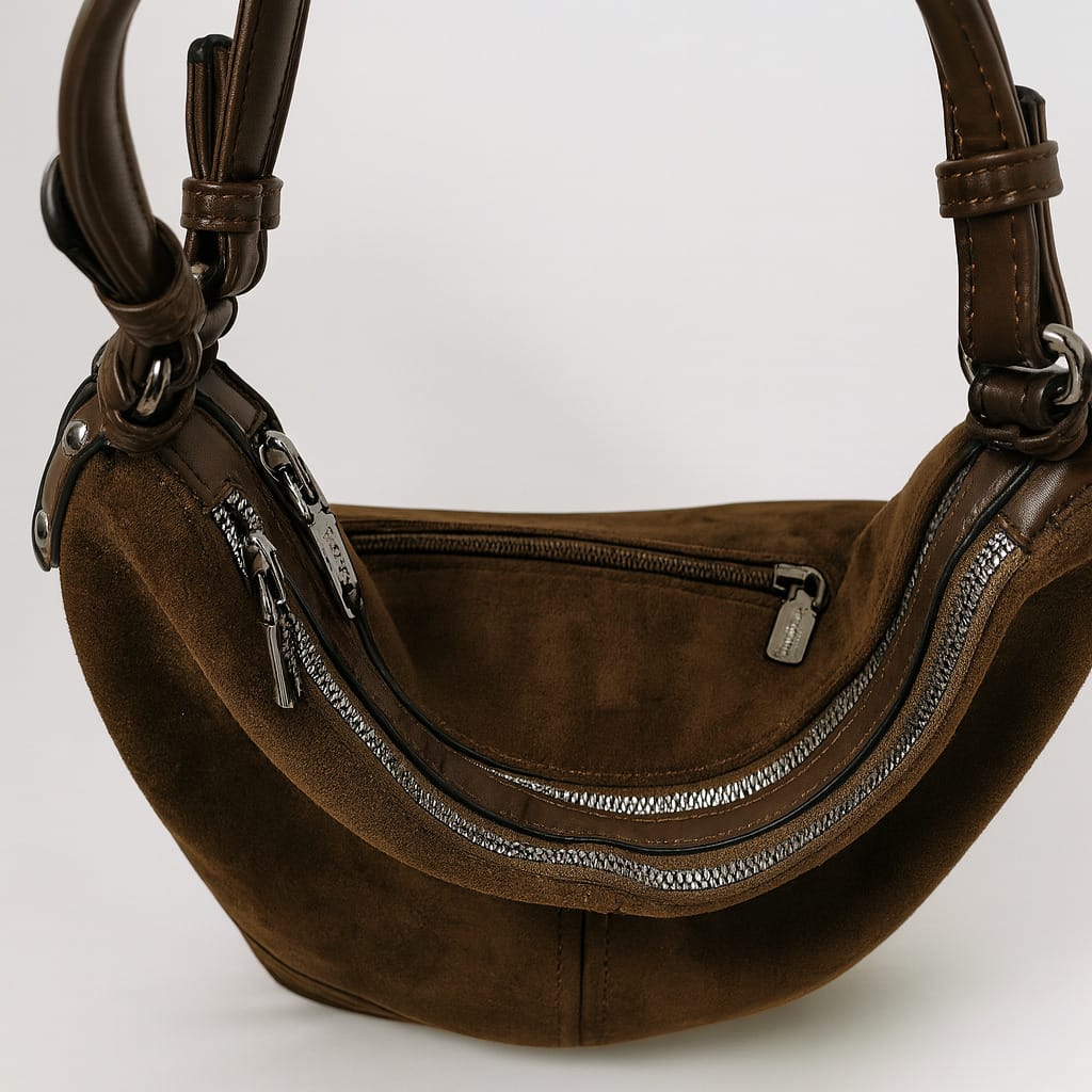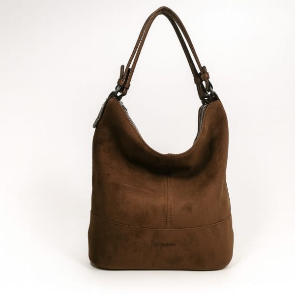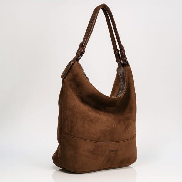 Тази кафява дамска чанта от еко велур е създадена за дни, в които искате максимален комфорт без компромис със стила. Кадифената текстура на велура придава премиум усещане. Дискретните декоративни шевове и фините метални елементи допълват излъчването, а външният заден джоб с цип е идеален за телефон или ключове.