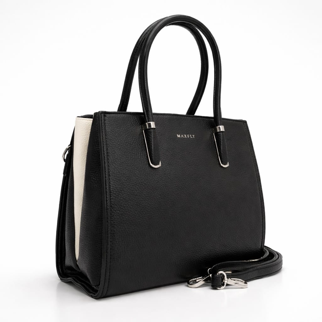 Дамската черна чанта с къси дръжки за работа- елегантен и практичен модел, подходящ за офис, срещи и ежедневна бизнес визия. Чантата е с твърда форма, което позволява да запазва стилния си вид през целия ден. Чантата разполага с удобни къси дръжки за носене в ръка и дълга регулируема презрамка за носене през рамо. Вътрешното пространство е добре организирано с две отделения и побира портфейл, телефон, документи и лични вещи-идеален избор за жени, които търсят стил, удобство и функционалност в една чанта.