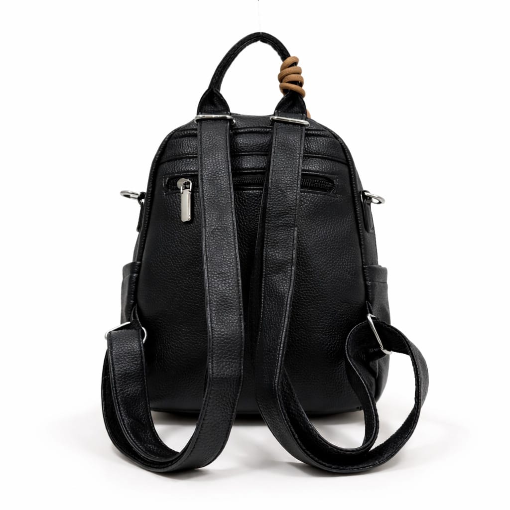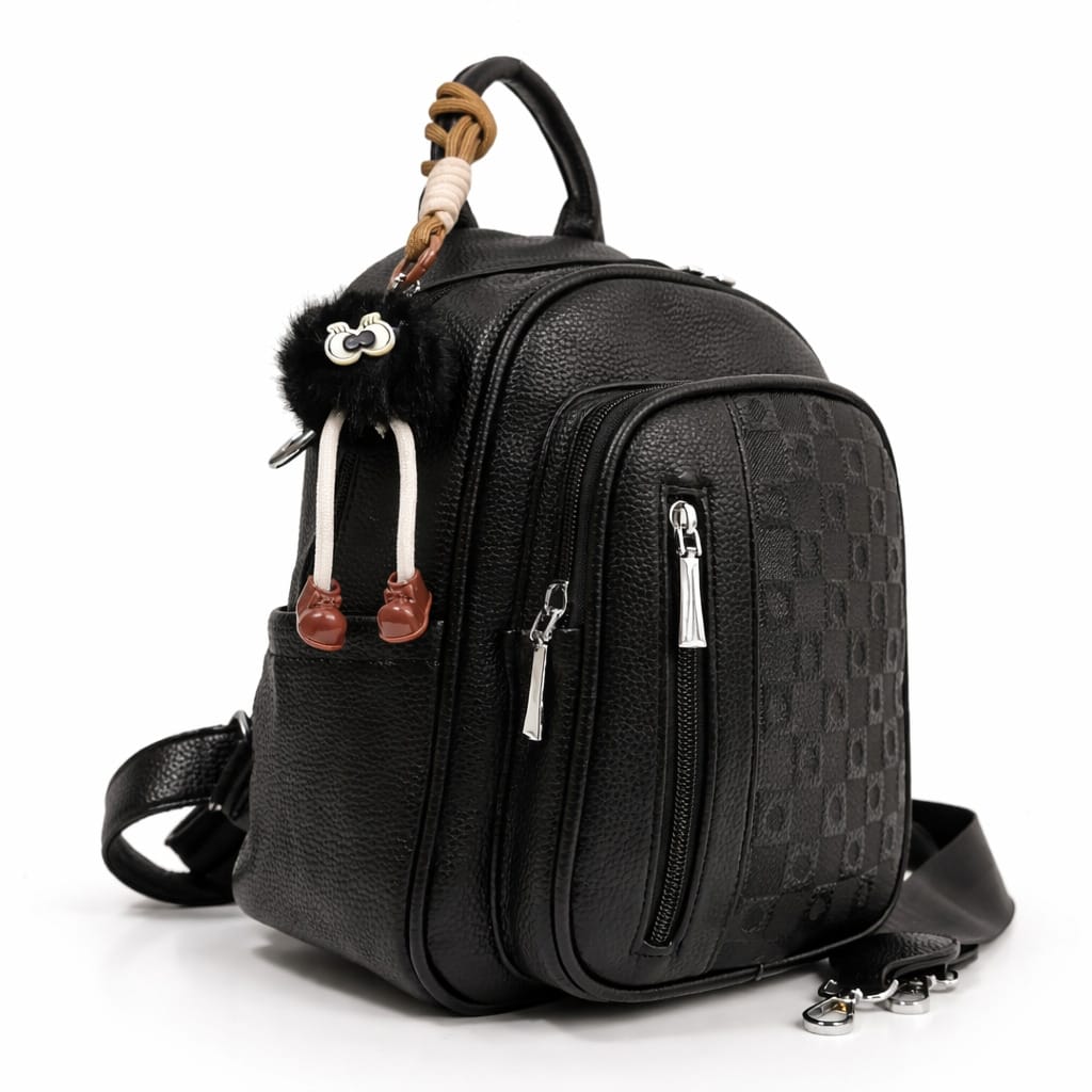 Тази дамска раница от еко кожа е онзи стилен акцент, който успява едновременно да бъде практичен и впечатляващ. Компактната форма я прави удобна за ежедневно носене, а черният цвят лесно се комбинира както с по-елегантна визия, така и с небрежен градски аутфит. Меката релефна еко кожа придава завършен и модерен характер, без излишна показност.