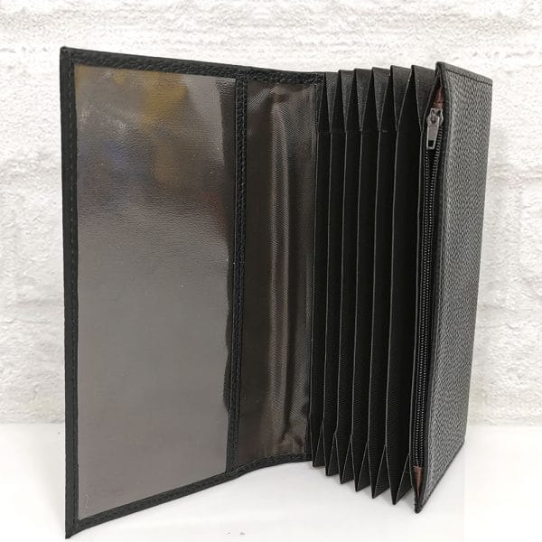 Основна част: 10 големи прегради, една от които се затварят с цип, на капака от вътрешната страна прозрачна преграда