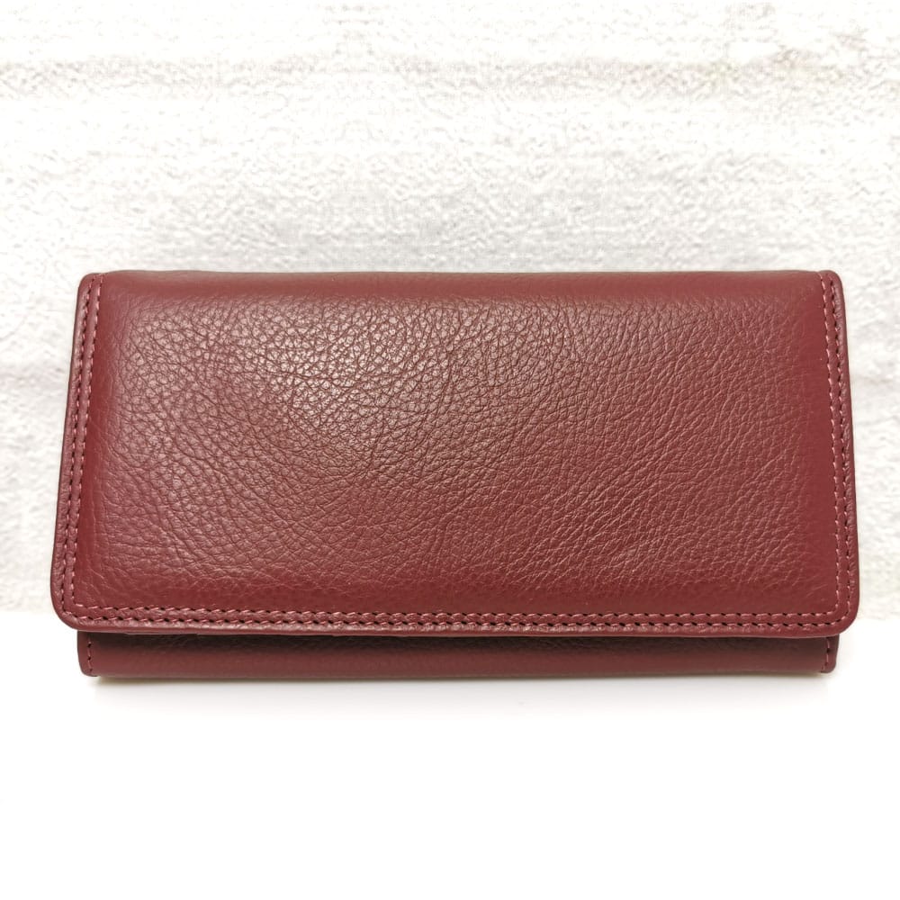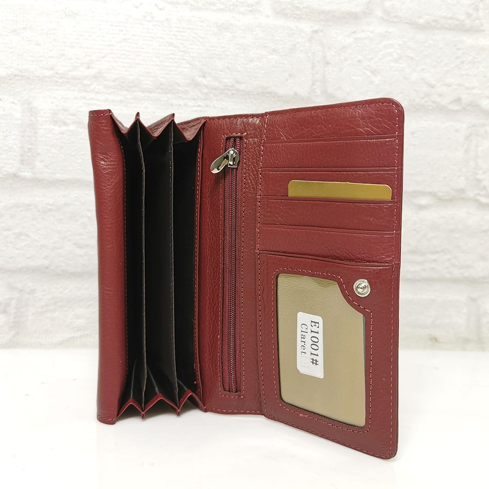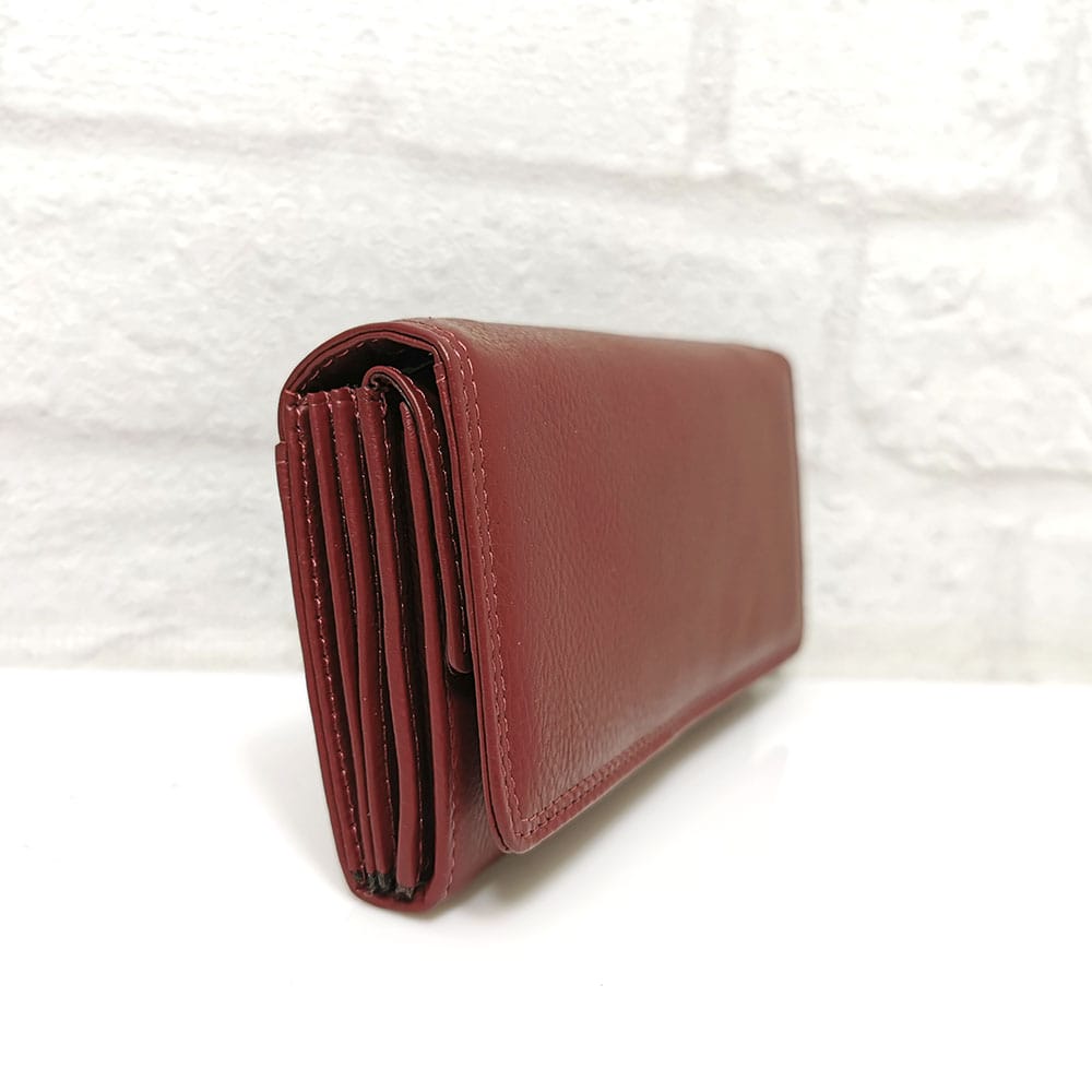 Стилно голямо дамско портмоне естествена кожа бордо с практично разпределение. Безплатна доставка до офис на транспортна фирма  за поръчки над 60.00 лева!
