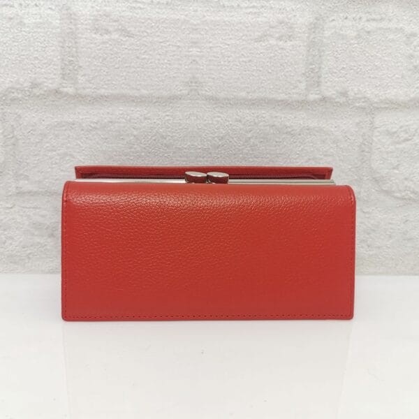 С копче тик-так, цип на една от преградите и с метална рамка на монетника
