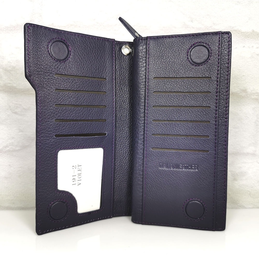 Дамско портмоне естествена кожа 191ТЛ тъмно лилаво, голямо