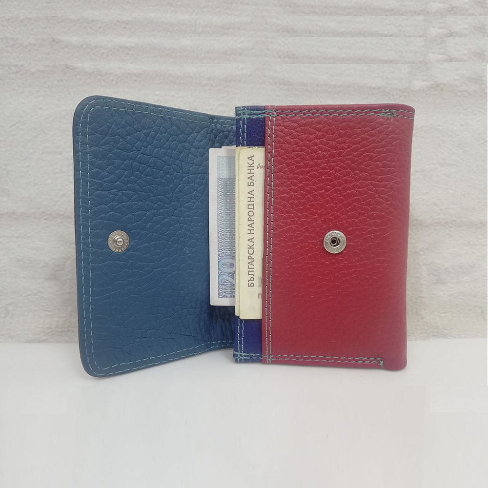 Две отделение за банкноти, 8 процепа за карти с различна големина, 1 от които е прозрачно, външен монетник с копче тик-так