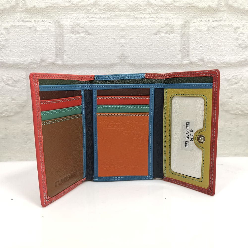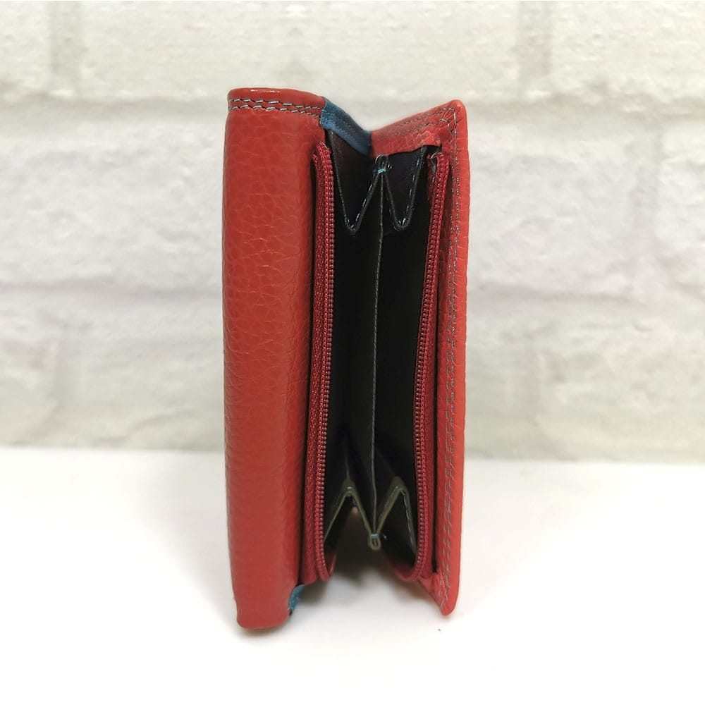 Едно отделение за банкноти, 9 процепа за карти с различна големина, 1 от които е прозрачно, голям монетник с цип