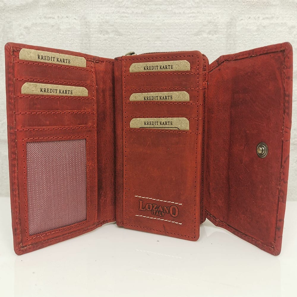 Две отделения за банкноти, 15 процепа за карти с различна големина, 4 от които са прозрачни,