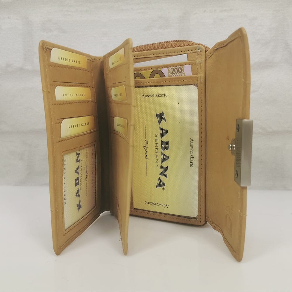 2 прегради за банкноти, 15 процепа за карти с различни големини, като 4 от тях са прозрачни, голям монетник с три прегради