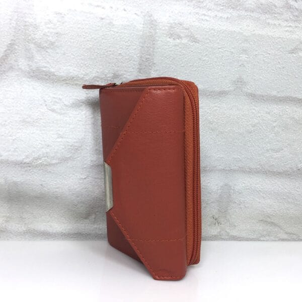 Две прегради за банкноти, на гърба външен монетник с цип и в него две прегради, 10 отделения за визитки, 3 прозрачни отделения за карти, още 3 прегради по дължината на портмонето
