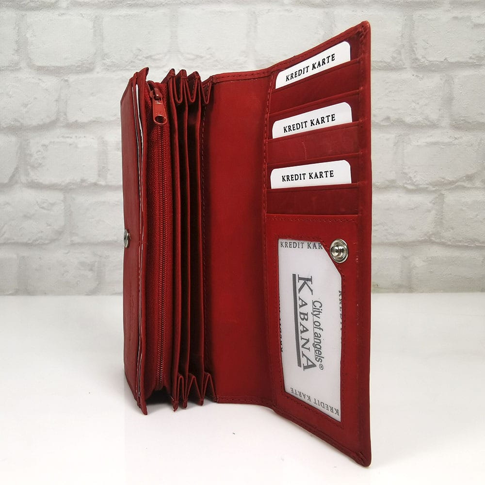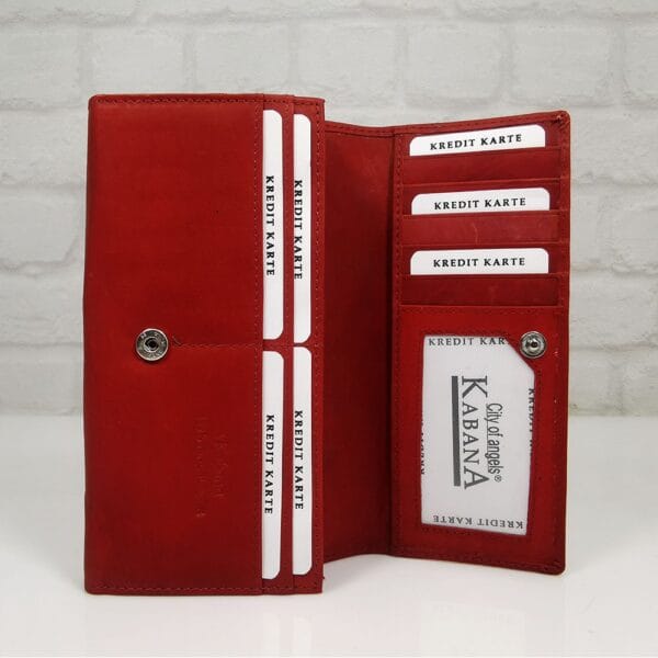 Три прегради за банкноти , вътрешен монетник с цип и преграда в средата, 10 отделения за визитки, отвън на гърба преграда