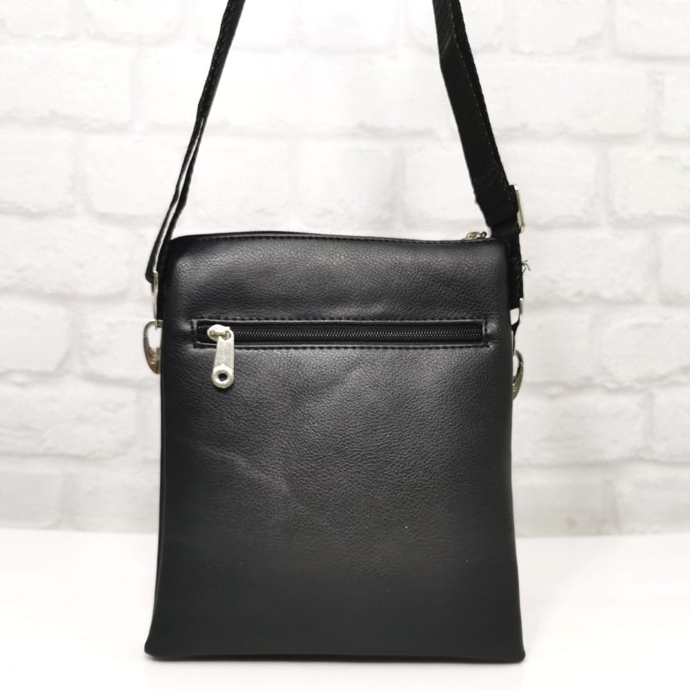 Отвън: отпред преграда без закопчаване и джоб с магнитни копчета в който има 6 малки джобчета за карти или визитки, отзад джоб с цип