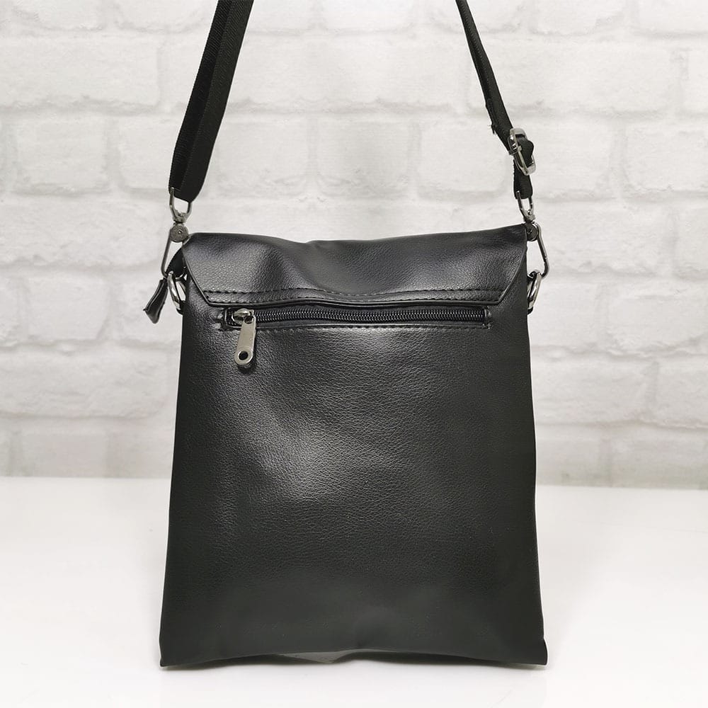 Две отделения, които се затварят с един общ цип, отзад на гърба джоб с цип, отпред под капака един джоб