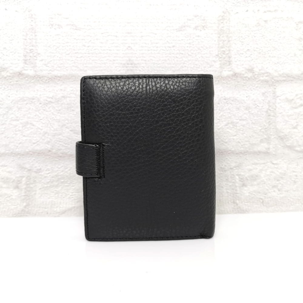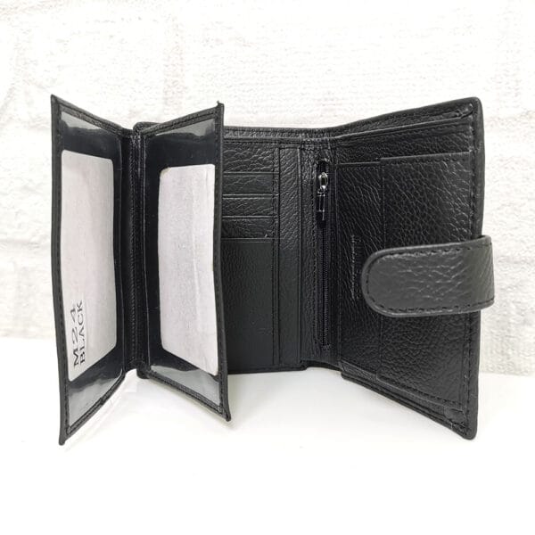 Две отделения за банкноти, като едното е с цип, 8 джобчета с различни размери за визитки или карти, като две от тях са прозрачни, едно джобче с цип, монетник с копче тик-так.