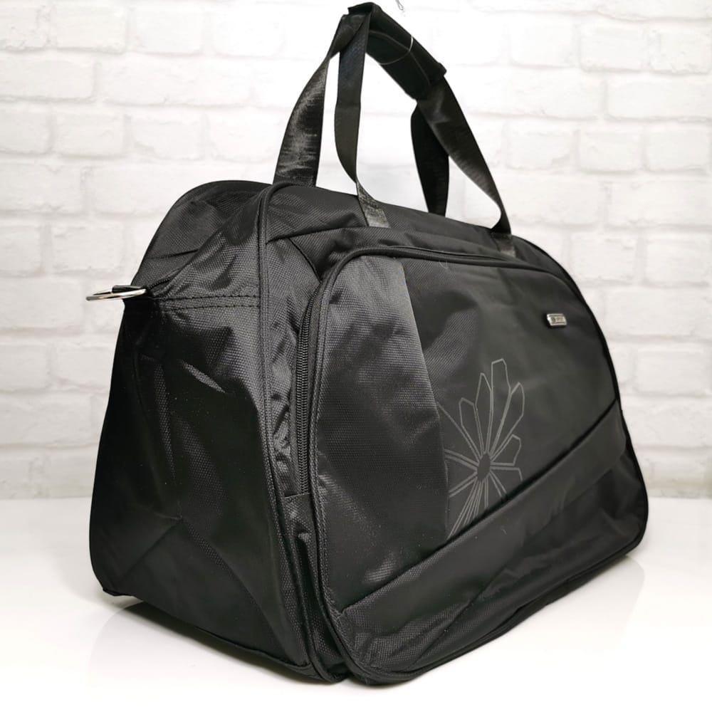 Отвън: един голям хоризонтален джоб с цип и един малък вертикален джоб с цип. На гърба има хоризонтална текстилна лента, с която можете да закрепите сака за дръжката на куфар.