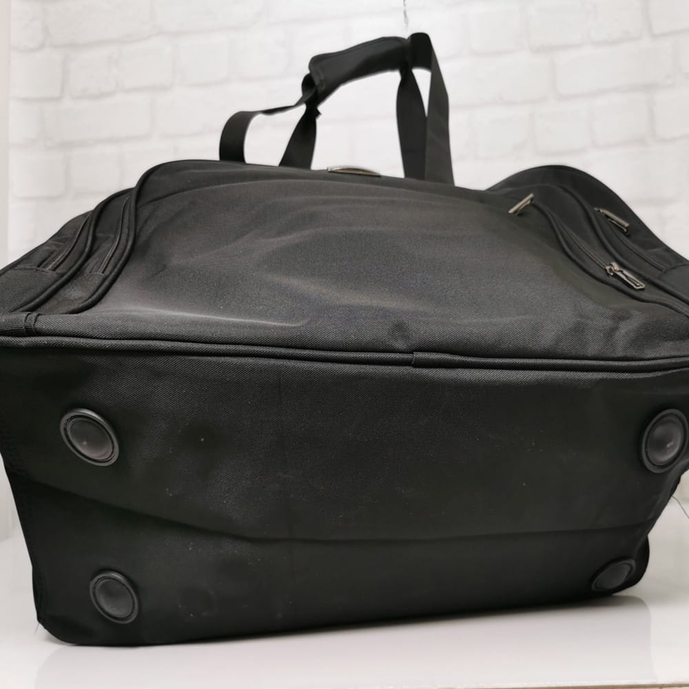 Отвън: три джоба с ципове. На гърба има хоризонтална текстилна лента, с която можете да закрепите сака за дръжката на куфар.