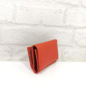 Три отделения за банкноти, като едното е с цип, 12 джобчета с различни размери за визитки или карти, като две от тях са прозрачни, монетник с копче тик-так