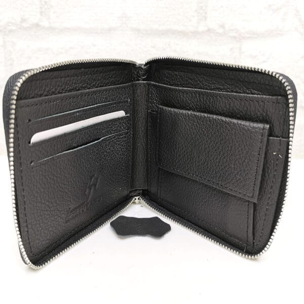 Три отделения за банкноти, 4 джобчета с различни размери за визитки или карти, монетник с копче тик-так