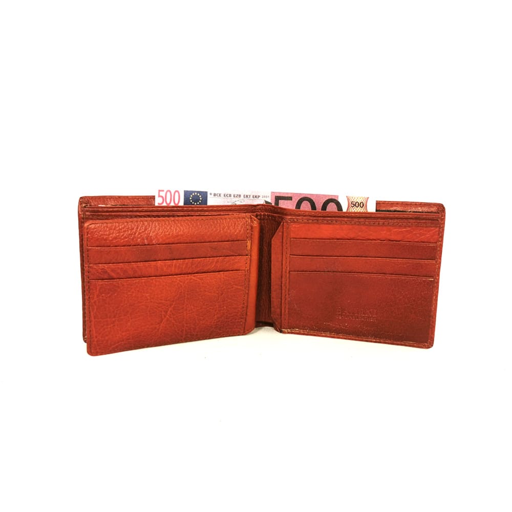 Две отделения за банкноти, 11 джобчета за визитки или карти, без монетник, отвън, отпред две джобчета без закопчаване.